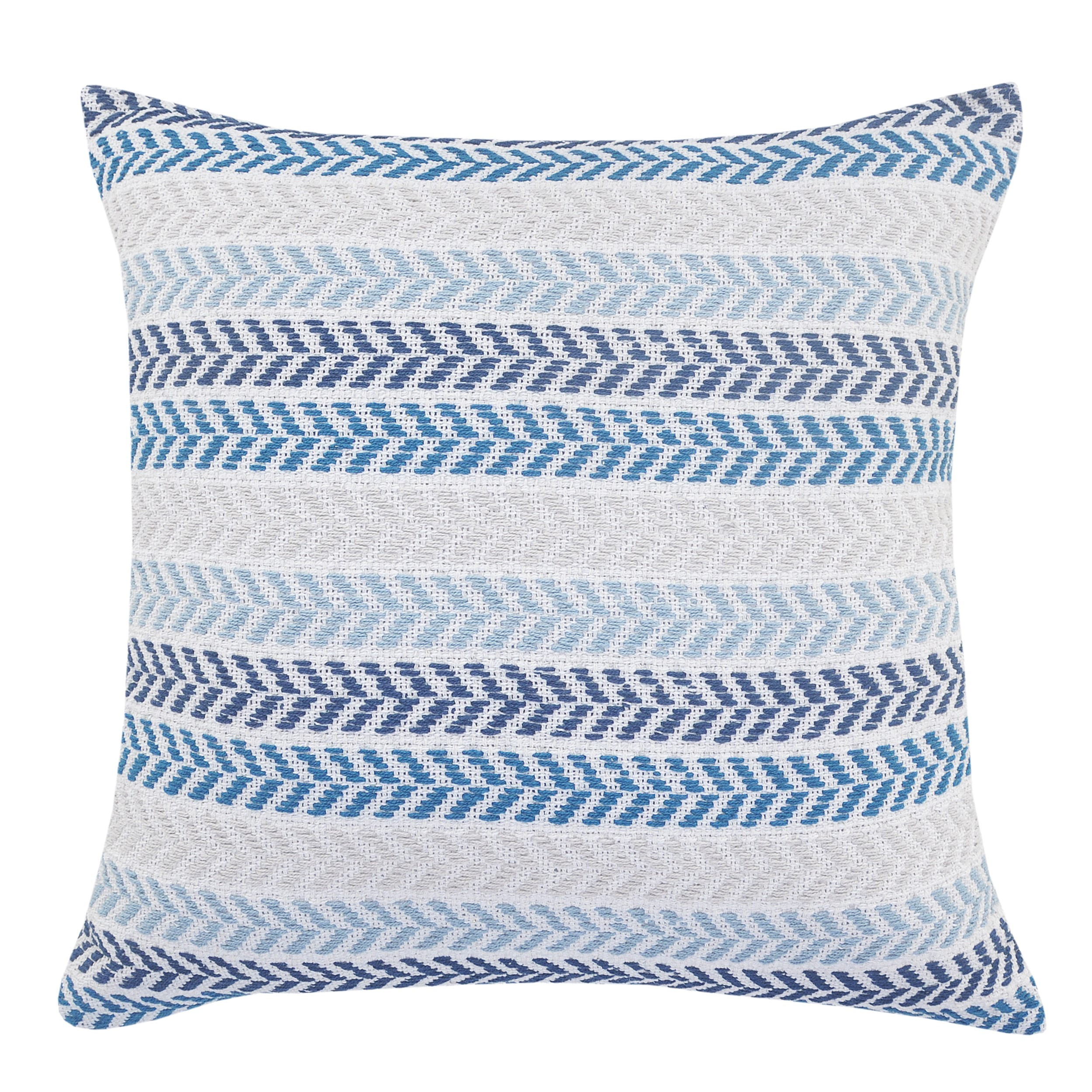Bring a bit of fashion and zip to your space with this eye-catching and comfy 18-inch blue and beige beach chevron cotton throw pillow cover. This blue and beige colored decorative pillow cover is made from high grade cotton that is durable and long lasting. Pillow covers are a good idea for anyone that loves to decorate or accent their space with color and texture. Combine with your own fill or insert to add decoration and dimension to your favorite chair, accent your sofa, or to use as part of your bed ensemble. 18.00-inch h x 18.00-inch w x 1.00-inch d.