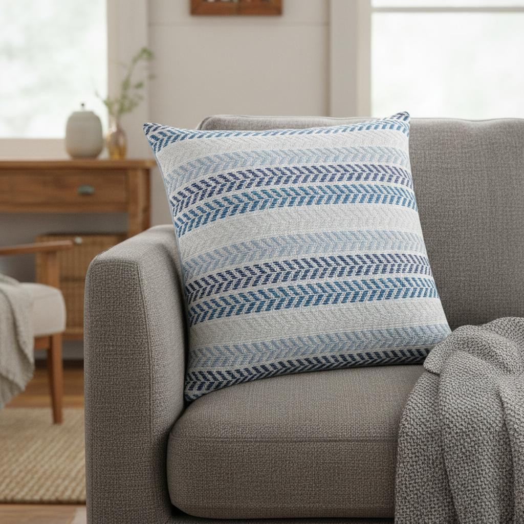 chevron cotton throw pillow cover, cotton throw pillow cover, beach chevron cotton throw pillow, chevron cotton throw pillow, 18" blue beige beach |