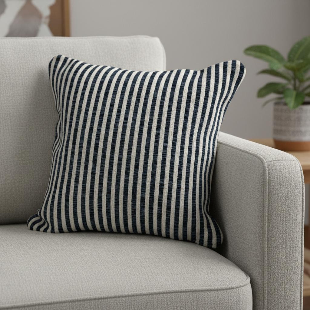 The perfect complement to your sofa, favorite chair, or bed, this 22-inch blue and white striped cotton throw pillow cover is a great decorative accent. This blue and white colored decorative pillow cover is made from high grade cotton that is durable and long lasting. Decorative pillow covers are a great way to change up the look and feel of your space easily and quickly. Combine with your own fill or insert to add decoration and dimension to your favorite chair, accent your sofa, or to use as part of your bed ensemble. 22.00-inch h x 22.00-inch w x 0.50-inch d.