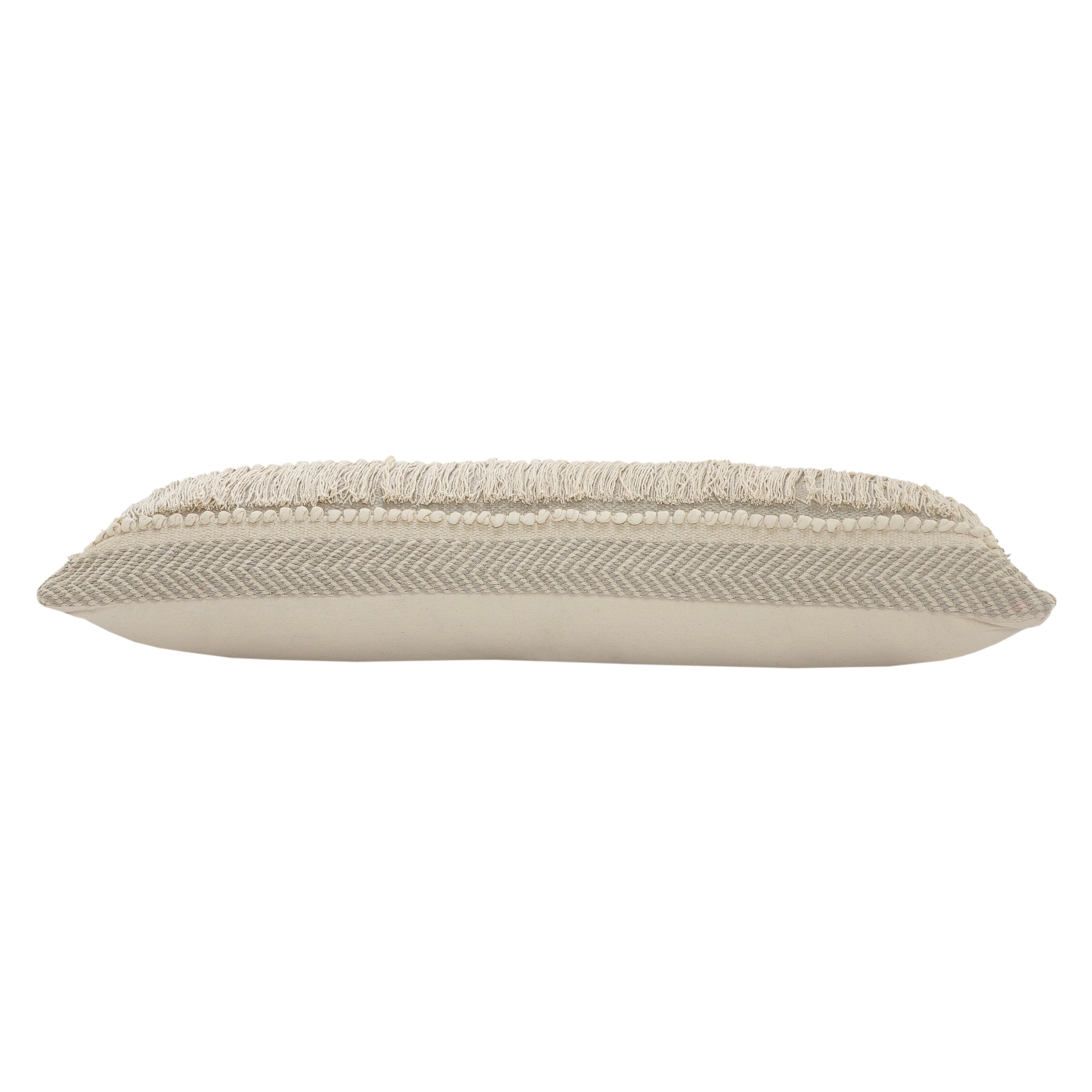 Add an air of fashion to your room and rejuvenate the space with this cute and fashionable 14-inch x 36-inch ivory and gray lumbar striped cotton throw pillow cover. This ivory and gray hued, accent pillow cover, represents quality construction, expertly made from durable cotton that is not only long lasting but soft to the touch as well. Decorative pillow covers are a great way to change up the look and feel of your space easily and quickly. Combine with your own fill or insert to add decoration and dimension to your favorite chair, accent your sofa, or to use as part of your bed ensemble. 14.00-inch h x 36.00-inch w x 0.25-inch d.