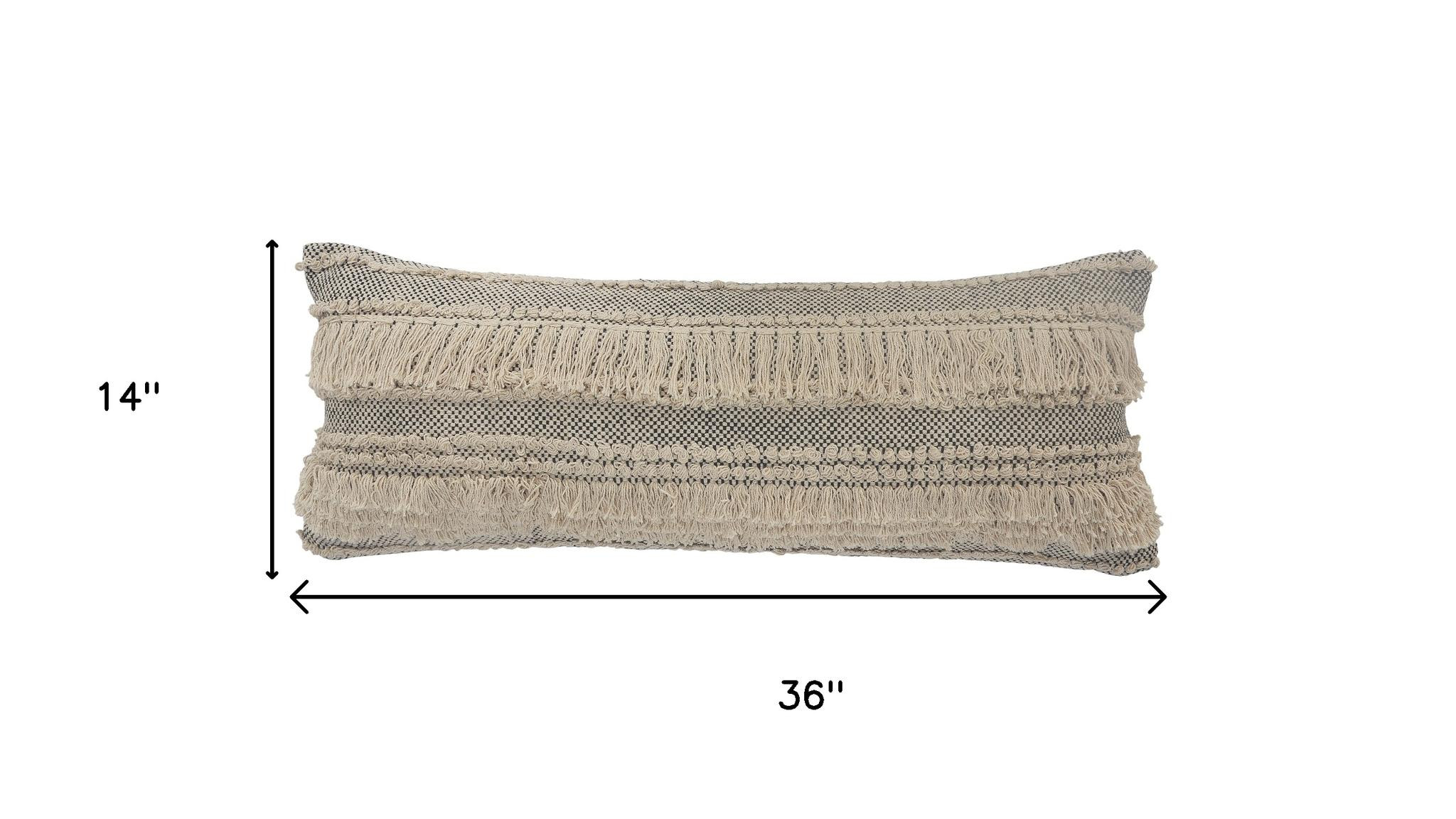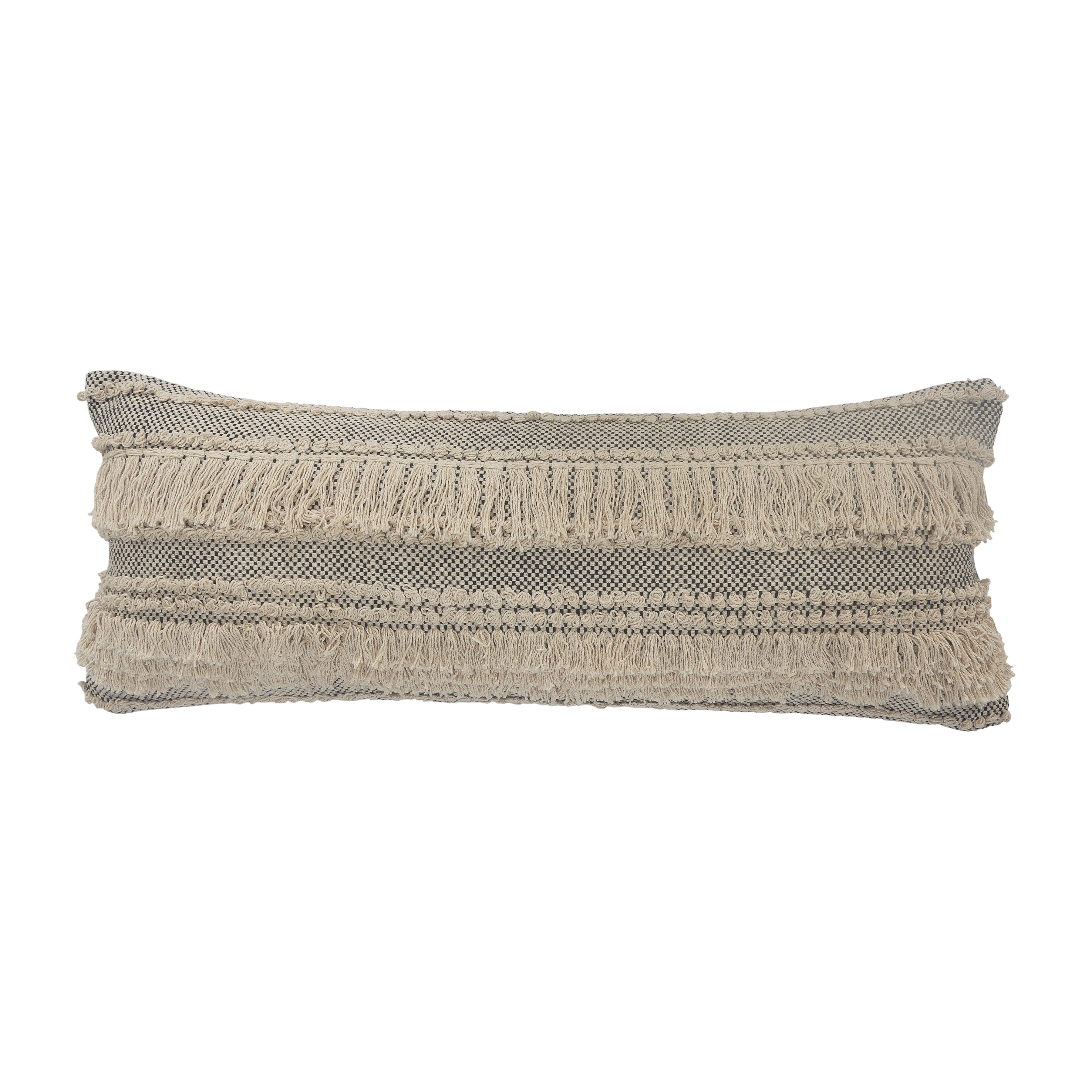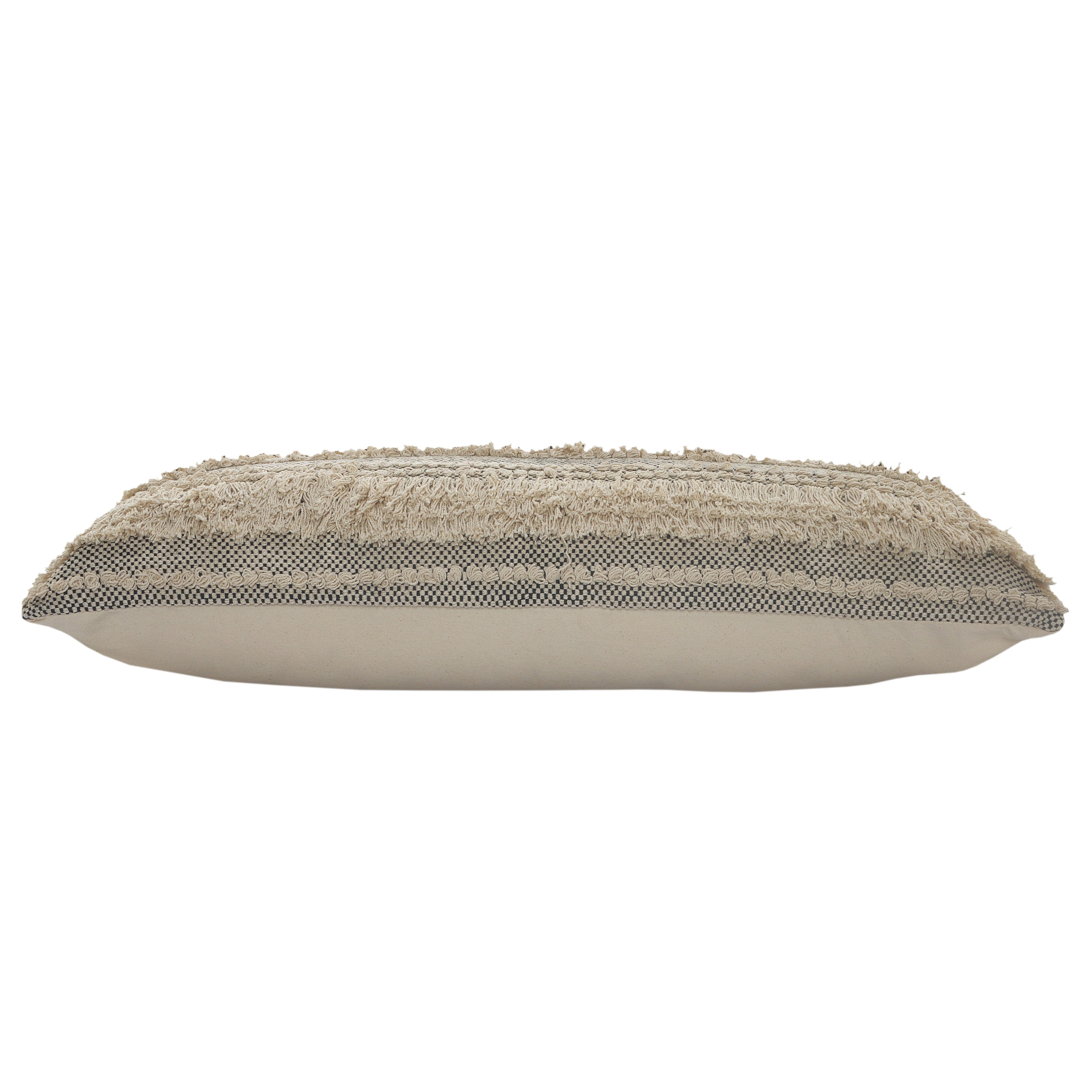The perfect complement to your sofa, favorite chair, or bed, this 14-inch x 36-inch beige and black lumbar striped cotton throw pillow cover is a great decorative accent. The beige and black coloring of the extremely durable and long lasting cotton pillow cover will add dimension and texture to your space. Pillow covers are a good idea for anyone that loves to decorate or accent their space with color and texture. Combine with your own fill or insert to add decoration and dimension to your favorite chair, accent your sofa, or to use as part of your bed ensemble. 14.00-inch h x 36.00-inch w x 0.25-inch d.