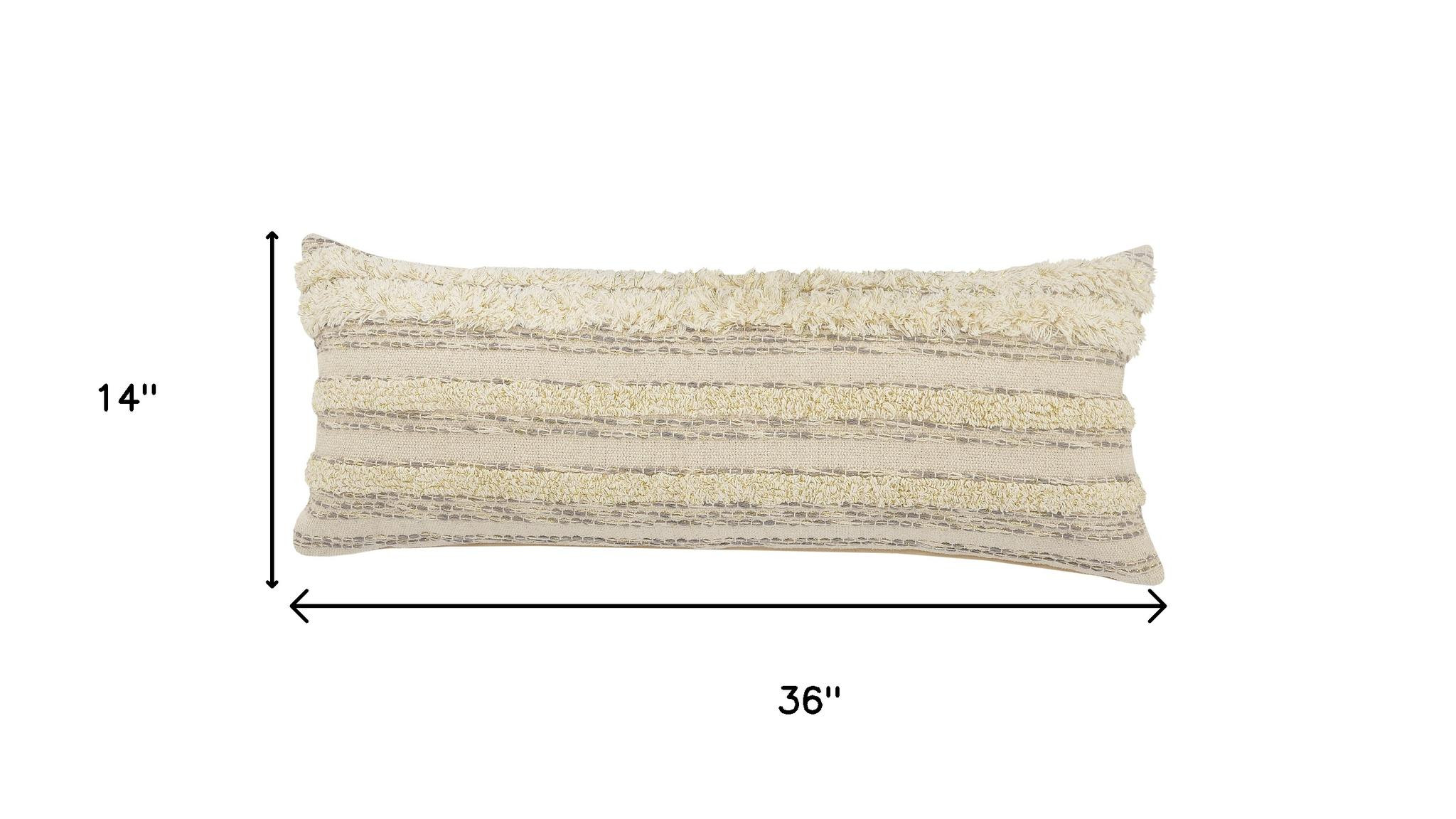 striped cotton throw pillow cover, cotton throw pillow cover, lumbar striped cotton throw pillow, throw pillow cover, 14" X 36" cream gray lumbar |