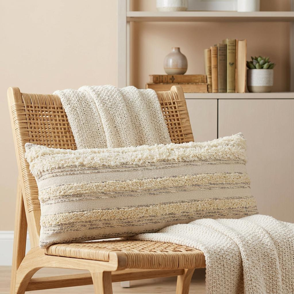 striped cotton throw pillow cover, cotton throw pillow cover, lumbar striped cotton throw pillow, cotton throw pillow cover fringe, pillow cover fringe texture |