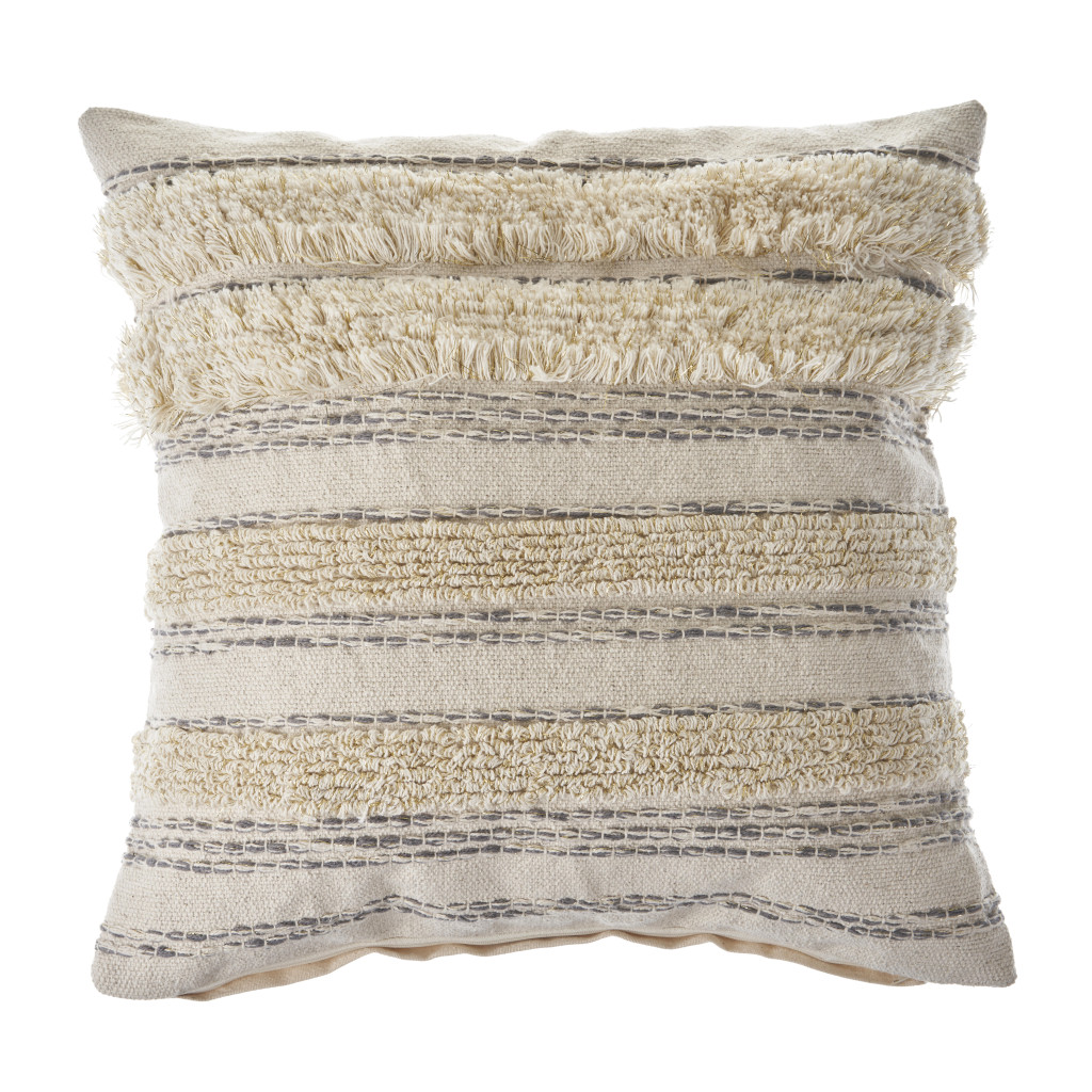 This 20-inch cream and gray striped cotton throw pillow cover will add a beautiful decorative accent to your decor. This soft and durable decorative pillow cover is expertly made of high grade, long lasting cotton in a cream and gray coloration. Decorative pillow covers are a great way to change up the look and feel of your space easily and quickly. Combine with your own fill or insert to add decoration and dimension to your favorite chair, accent your sofa, or to use as part of your bed ensemble. 20.00-inch h x 20.00-inch w x 0.25-inch d.