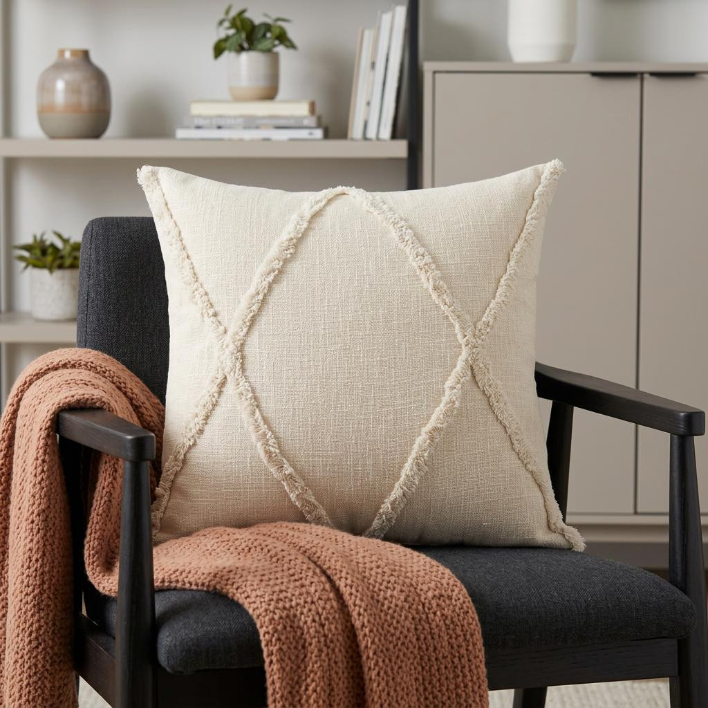 cotton throw pillow cover tufts, cotton throw pillow cover, diamond cotton throw pillow cover, throw pillow cover tufts texture, beige diamond cotton throw pillow |