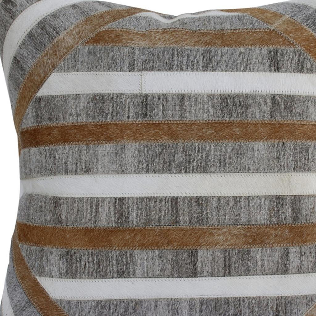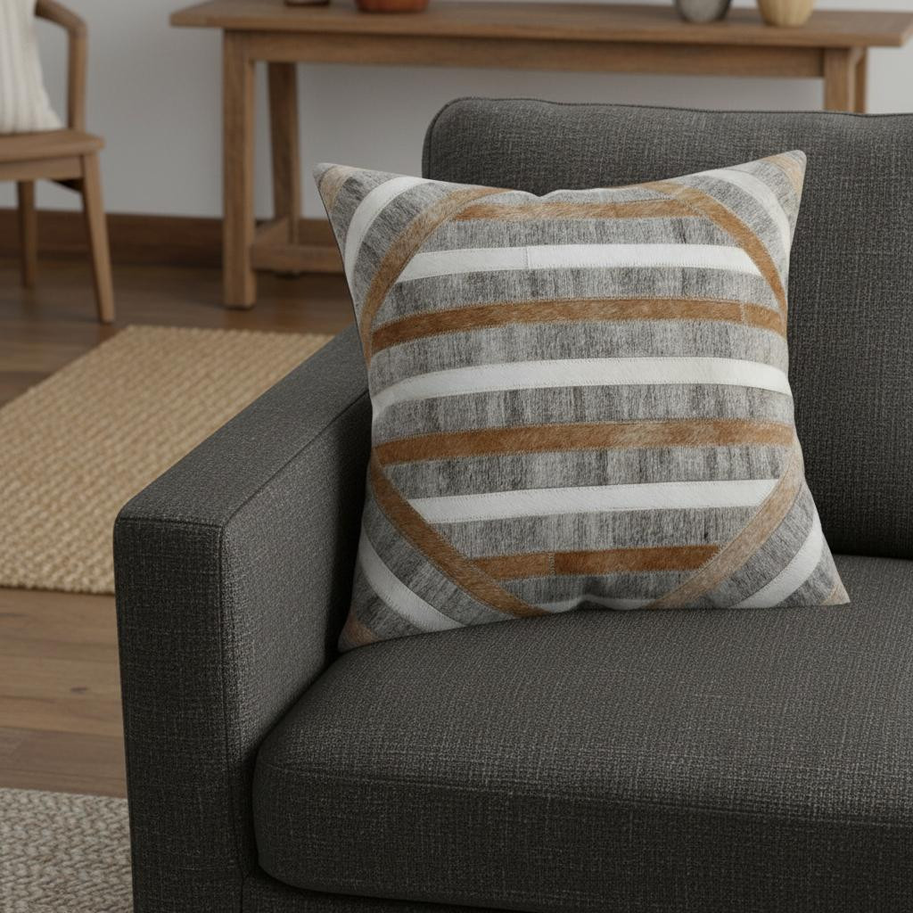 The perfect complement to your sofa, favorite chair, or bed, this 20-inch gray and brown striped faux hide throw pillow cover is a great decorative accent. This gray and brown hued, accent pillow cover, represents quality construction, expertly made from durable faux hide that is not only long lasting but soft to the touch as well. Decorative pillow covers are a great way to change up the look and feel of your space easily and quickly. Combine with your own fill or insert to add decoration and dimension to your favorite chair, accent your sofa, or to use as part of your bed ensemble. 20.00-inch h x 20.00-inch w x 0.25-inch d.
