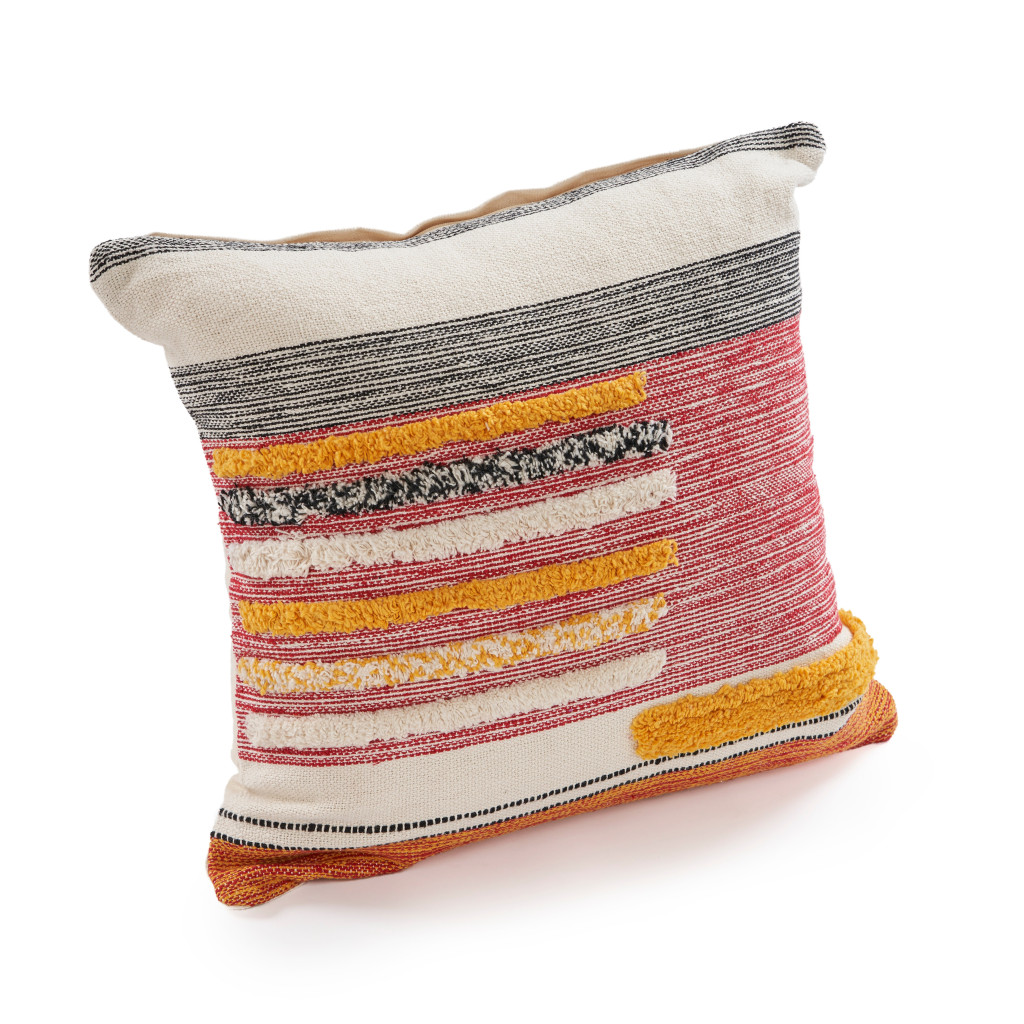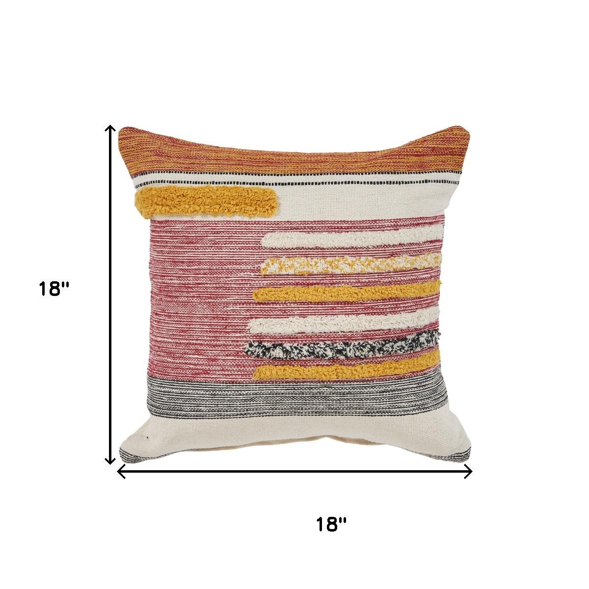 The 18-inch orange and yellow striped cotton throw pillow cover is the perfect decorative accessory for your home. This orange and yellow colored decorative pillow cover is made from high grade cotton that is durable and long lasting. Decorative pillow covers are a great way to change up the look and feel of your space easily and quickly. Combine with your own fill or insert to add decoration and dimension to your favorite chair, accent your sofa, or to use as part of your bed ensemble. 18.00-inch h x 18.00-inch w x 0.50-inch d.