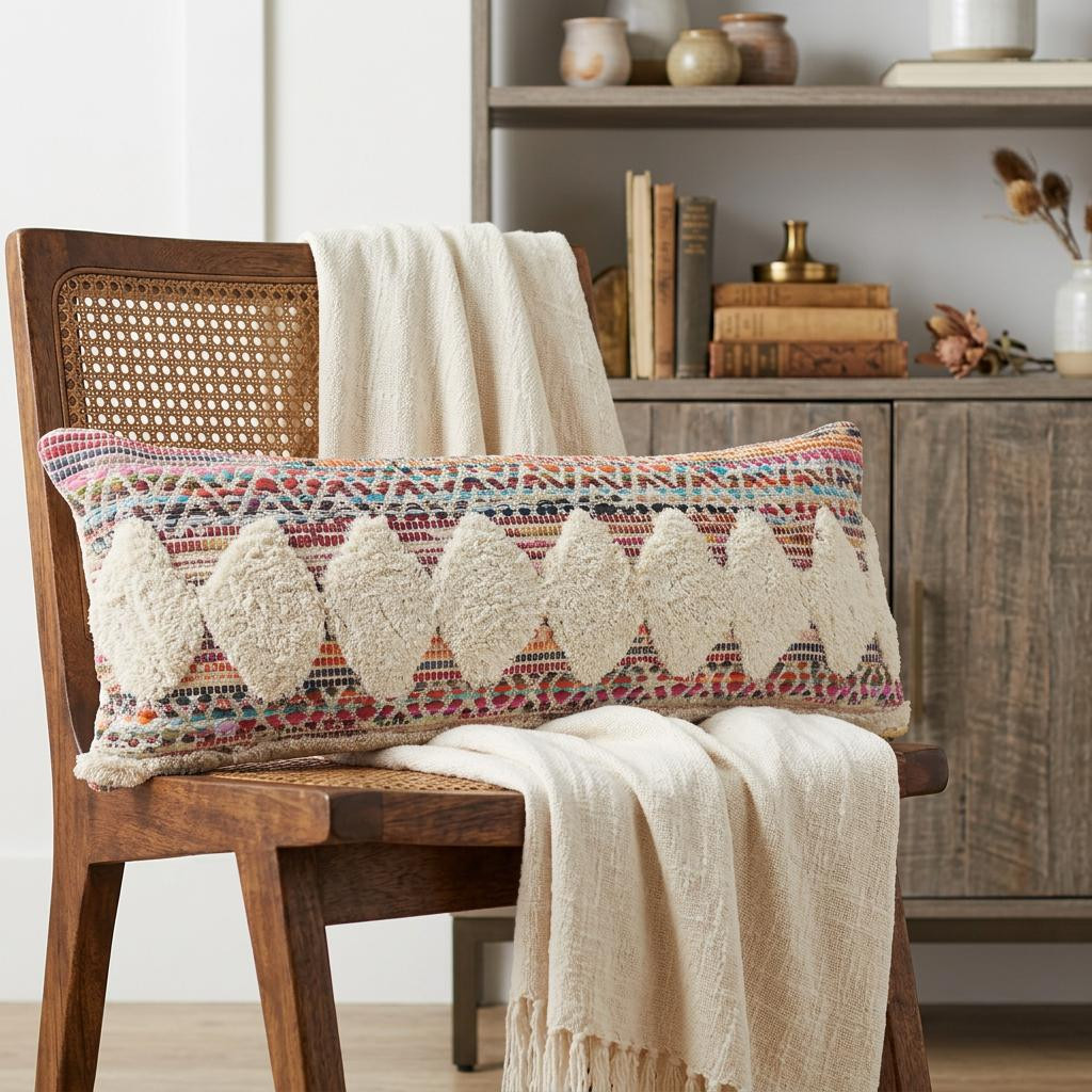 cotton throw pillow cover tufts, pillow cover tufts, lumbar diamond cotton throw pillow, diamond cotton throw pillow cover, 14" X 36" cream brown white lumbar |