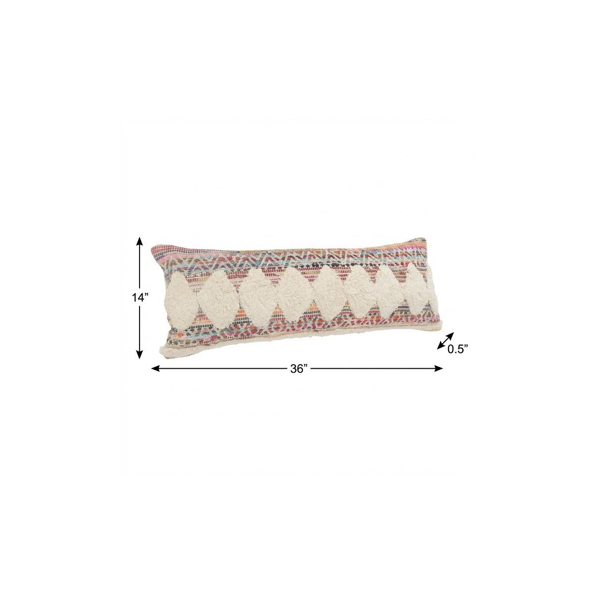 Add an air of fashion to your room and rejuvenate the space with this cute and fashionable 14-inch x 36-inch cream brown and white lumbar diamond cotton throw pillow cover with tufts. This cream, brown, and white hued, accent pillow cover, represents quality construction, expertly made from durable cotton that is not only long lasting but soft to the touch as well. Charming decorative tufts give this design texture along with a hand-crafted look and feel. Decorative pillow covers are a great way to change up the look and feel of your space easily and quickly. Combine with your own fill or insert to add decoration and dimension to your favorite chair, accent your sofa, or to use as part of your bed ensemble. 14.00-inch h x 36.00-inch w x 0.50-inch d.