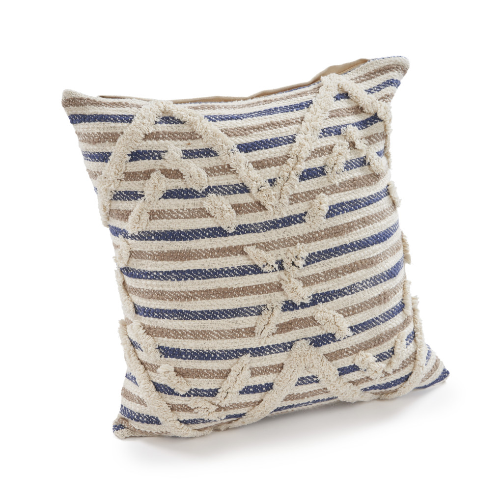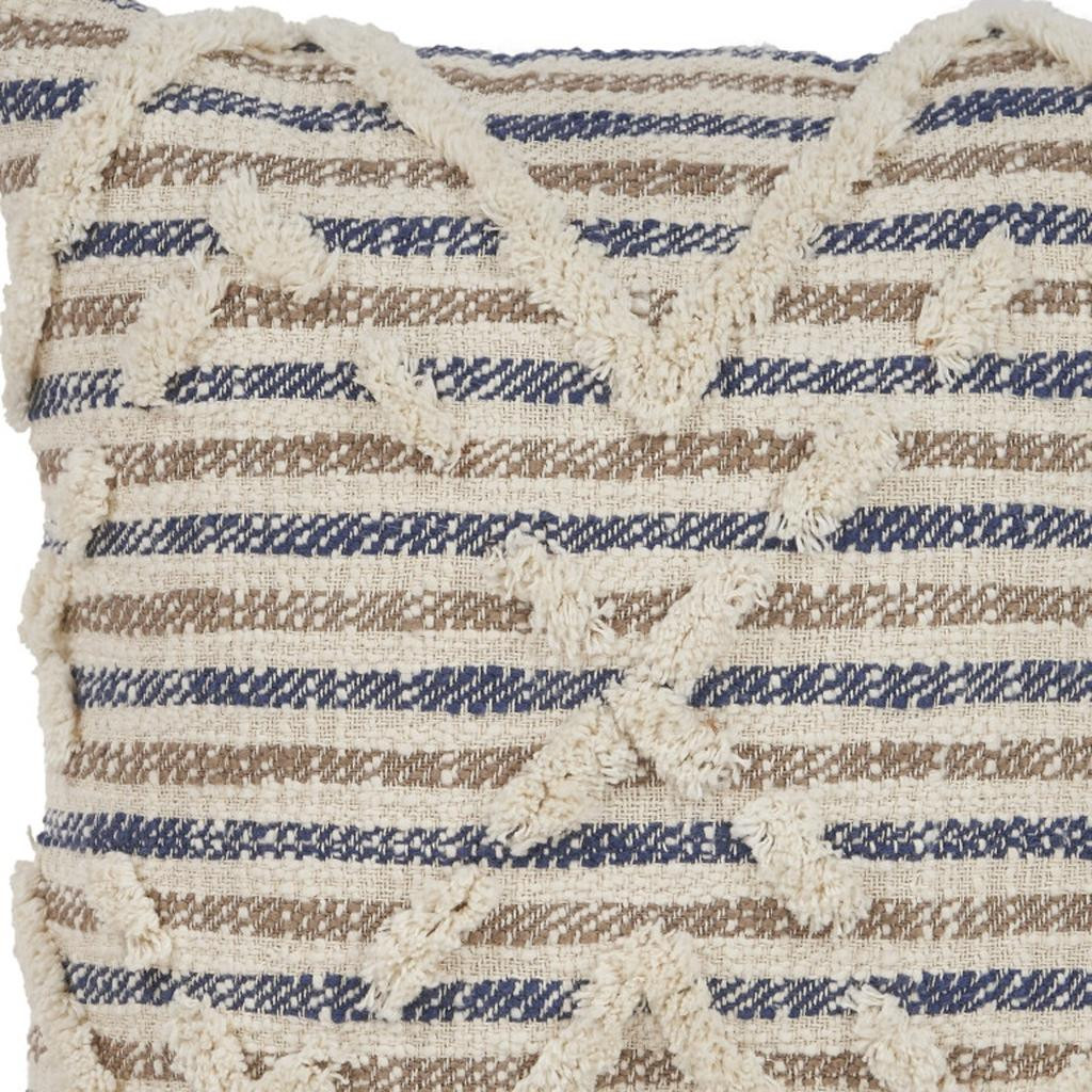 Unique and decorative, this comfortable 18-inch blue and tan beach diamond cotton throw pillow cover will leave a lasting impression. This blue and tan hued, accent pillow cover, represents quality construction, expertly made from durable cotton that is not only long lasting but soft to the touch as well. Pillow covers are a good idea for anyone that loves to decorate or accent their space with color and texture. Combine with your own fill or insert to add decoration and dimension to your favorite chair, accent your sofa, or to use as part of your bed ensemble. 18.00-inch h x 18.00-inch w x 0.50-inch d.