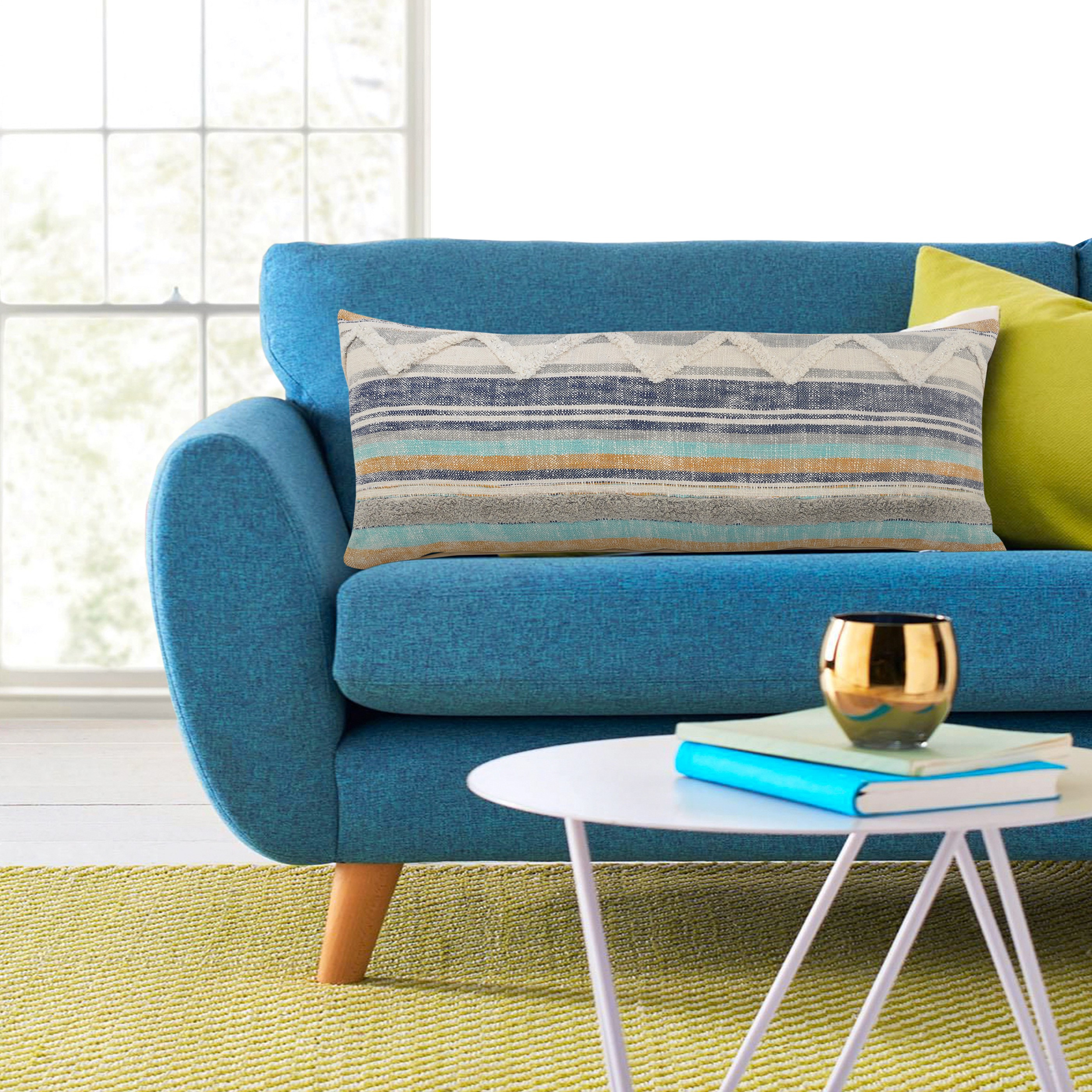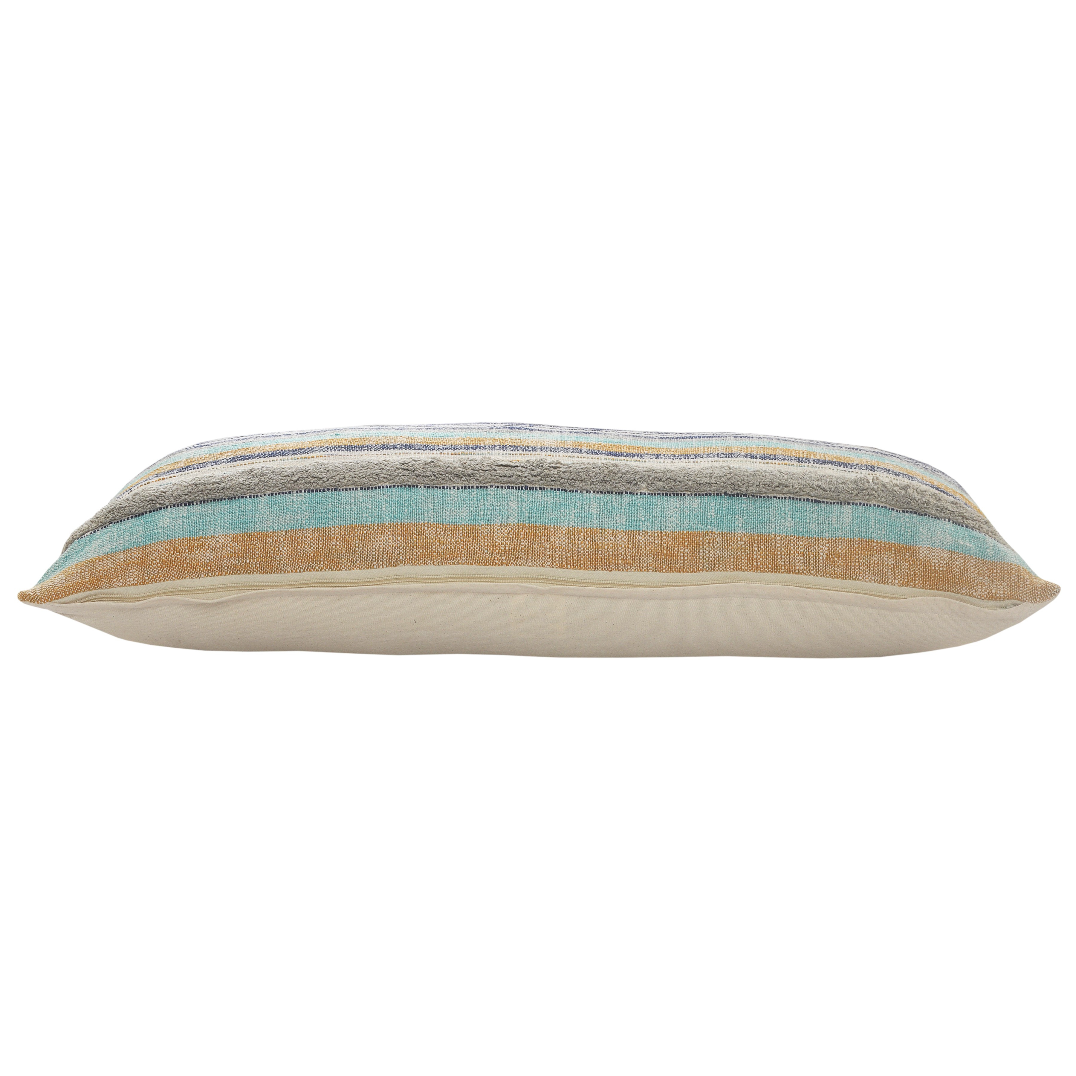 This 14-inch x 36-inch blue and tan lumbar beach striped cotton throw pillow cover will add a beautiful decorative accent to your decor. This blue and tan hued, accent pillow cover, represents quality construction, expertly made from durable cotton that is not only long lasting but soft to the touch as well. Decorative pillow covers are a great way to change up the look and feel of your space easily and quickly. Combine with your own fill or insert to add decoration and dimension to your favorite chair, accent your sofa, or to use as part of your bed ensemble. 14.00-inch h x 36.00-inch w x 0.50-inch d.