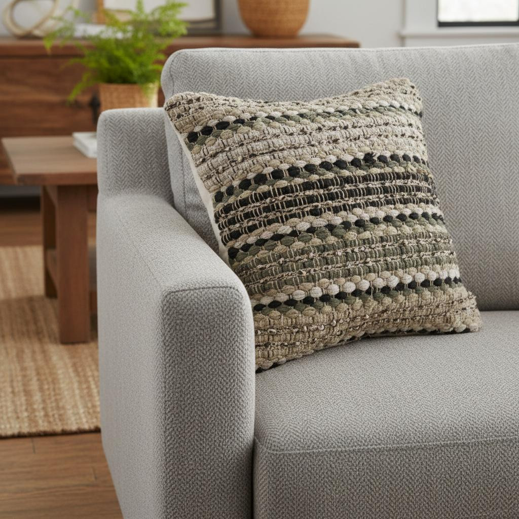 cotton blend throw pillow cover, blend throw pillow cover, throw pillow cover, striped cotton blend throw pillow, 18" beige brown beach |
