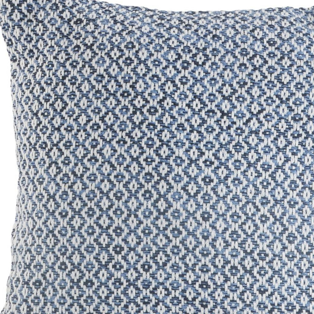 Bring a bit of fashion and zip to your space with this eye-catching and comfy 18-inch blue and white geometric cotton throw pillow cover. This soft and durable decorative pillow cover is expertly made of high grade, long lasting cotton in a blue and white coloration. Decorative pillow covers are a great way to change up the look and feel of your space easily and quickly. Combine with your own fill or insert to add decoration and dimension to your favorite chair, accent your sofa, or to use as part of your bed ensemble. 18.00-inch h x 18.00-inch w x 0.25-inch d.
