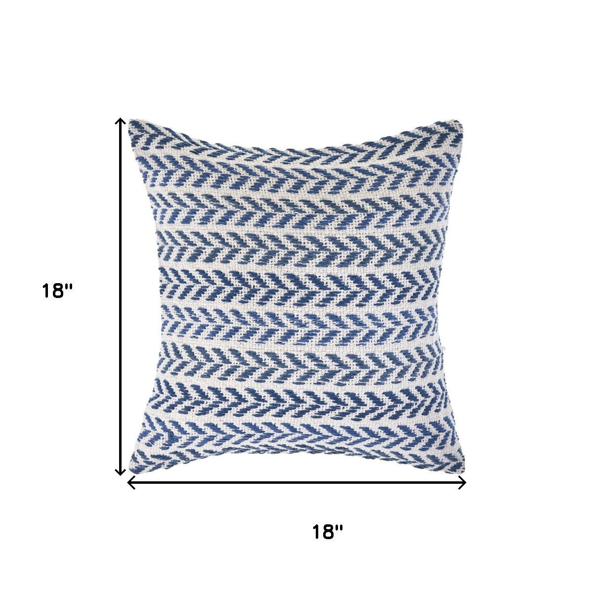 This 18-inch blue and white beach chevron cotton throw pillow cover will add a beautiful decorative accent to your decor. This blue and white hued, accent pillow cover, represents quality construction, expertly made from durable cotton that is not only long lasting but soft to the touch as well. Pillow covers are a good idea for anyone that loves to decorate or accent their space with color and texture. Combine with your own fill or insert to add decoration and dimension to your favorite chair, accent your sofa, or to use as part of your bed ensemble. 18.00-inch h x 18.00-inch w x 1.00-inch d.