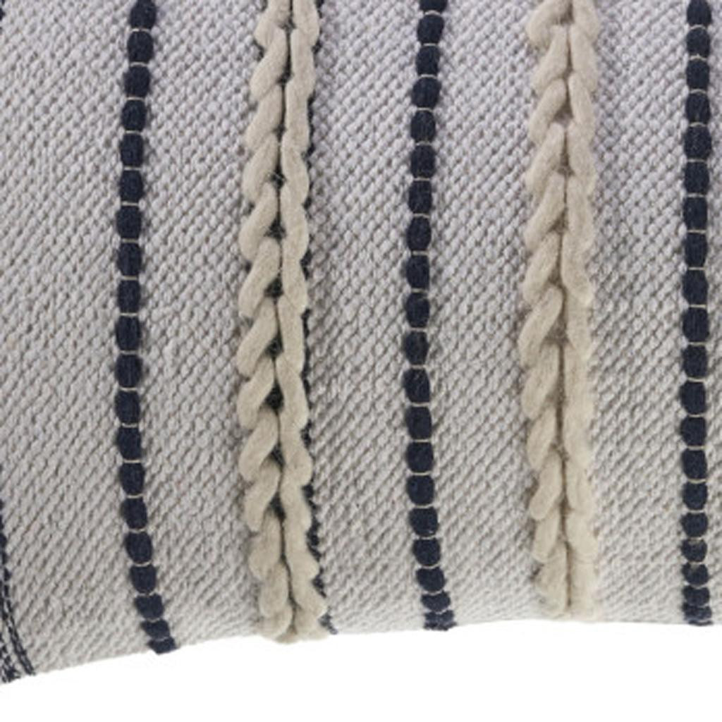 Bring a bit of fashion and zip to your space with this eye-catching and comfy 14-inch x 28-inch blue and white lumbar striped cotton blend throw pillow cover. Durable blue and white cotton blend has been used to give this pillow cover a beautiful look that will stand the test of time. Decorative pillow covers are a great way to change up the look and feel of your space easily and quickly. Combine with your own fill or insert to add decoration and dimension to your favorite chair, accent your sofa, or to use as part of your bed ensemble. 14.00-inch h x 28.00-inch w x 0.50-inch d.