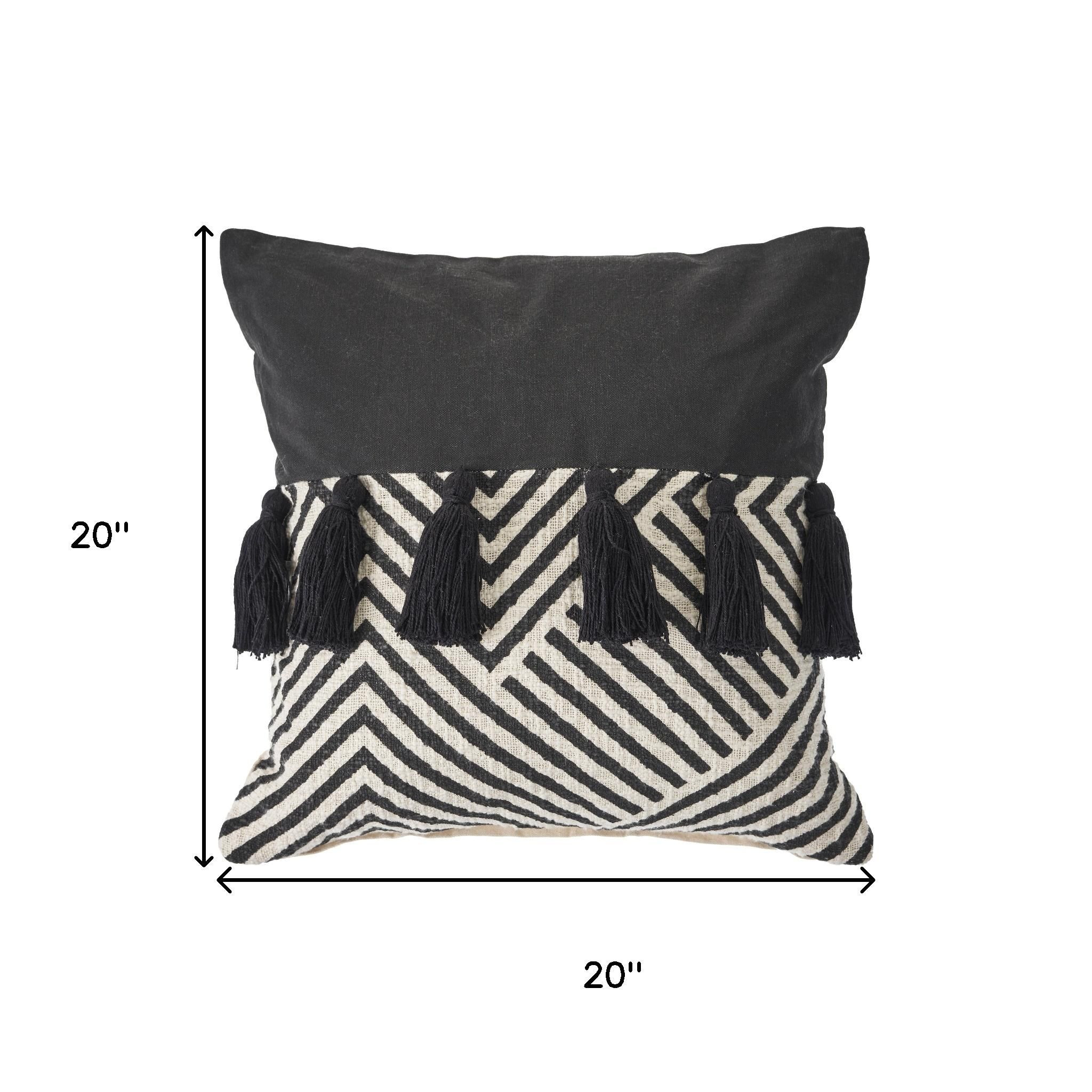 Bring a bit of fashion and zip to your space with this eye-catching and comfy 20-inch black and white chevron cotton throw pillow cover. This black and white colored decorative pillow cover is made from high grade cotton that is durable and long lasting. Decorative pillow covers are a great way to change up the look and feel of your space easily and quickly. Combine with your own fill or insert to add decoration and dimension to your favorite chair, accent your sofa, or to use as part of your bed ensemble. 20.00-inch h x 20.00-inch w x 0.25-inch d.