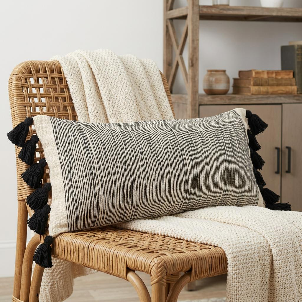 cotton throw pillow cover tassels, pillow cover tassels, striped cotton throw pillow cover, cotton throw pillow cover, lumbar striped cotton throw pillow |