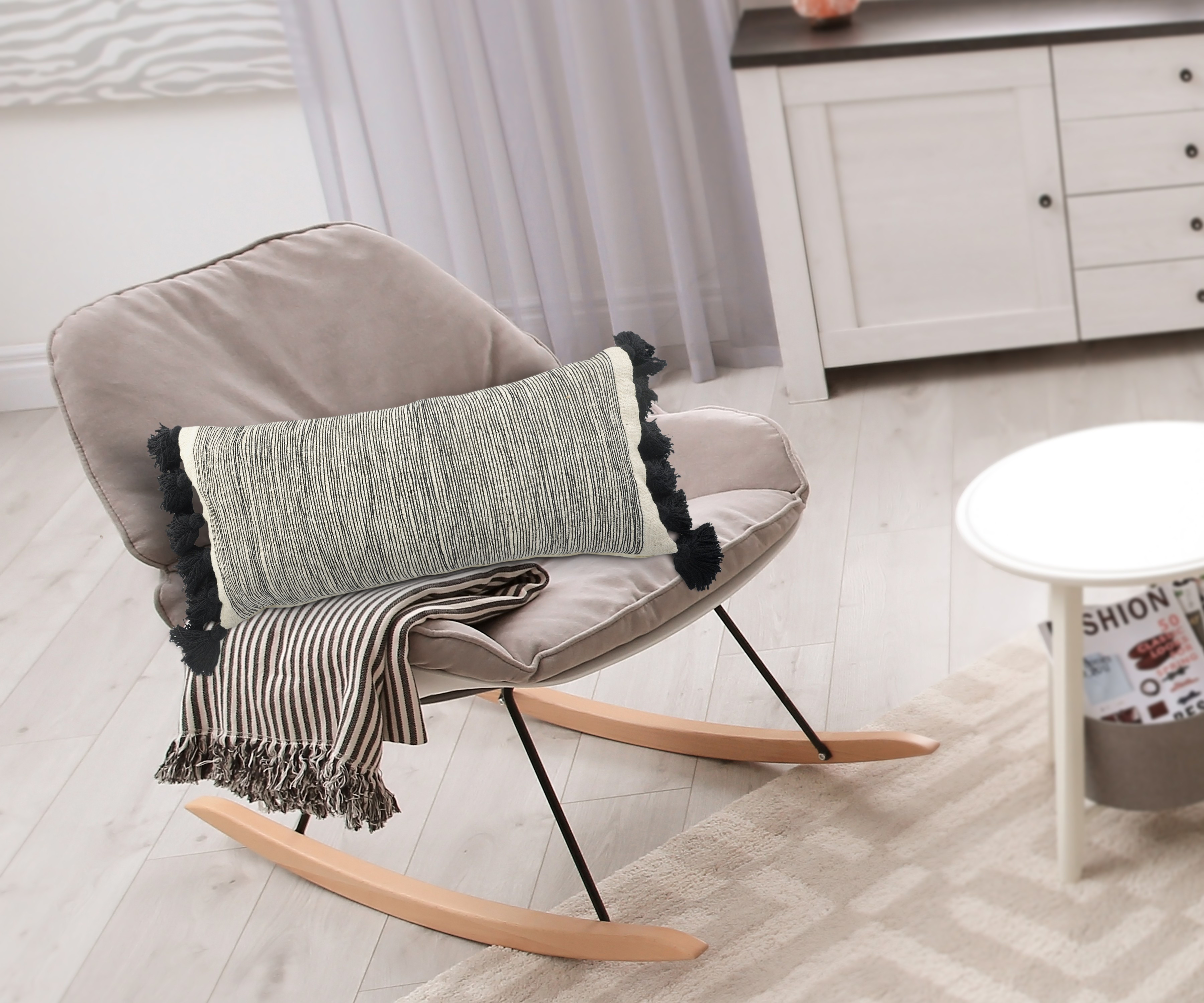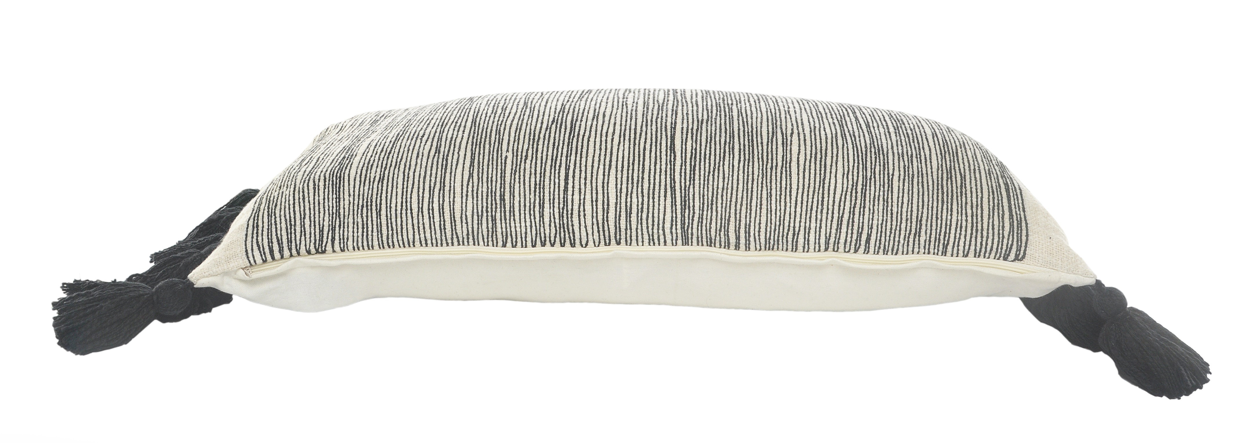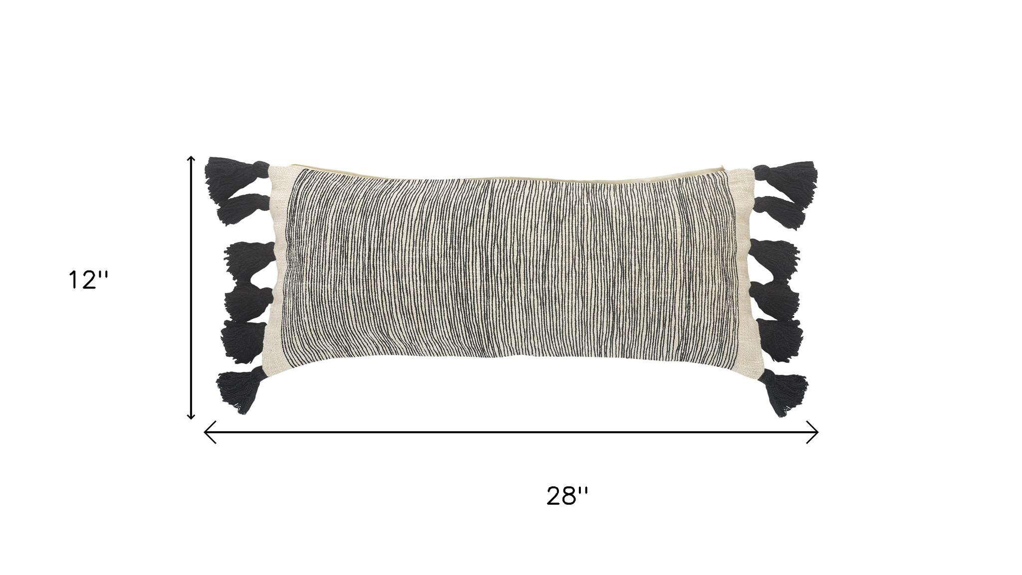 Add an air of fashion to your room and rejuvenate the space with this cute and fashionable 12-inch x 28-inch white and black lumbar striped cotton throw pillow cover. The white and black coloring of the extremely durable and long lasting cotton pillow cover will add dimension and texture to your space. Pillow covers are a good idea for anyone that loves to decorate or accent their space with color and texture. Combine with your own fill or insert to add decoration and dimension to your favorite chair, accent your sofa, or to use as part of your bed ensemble. 12.00-inch h x 28.00-inch w x 0.25-inch d.