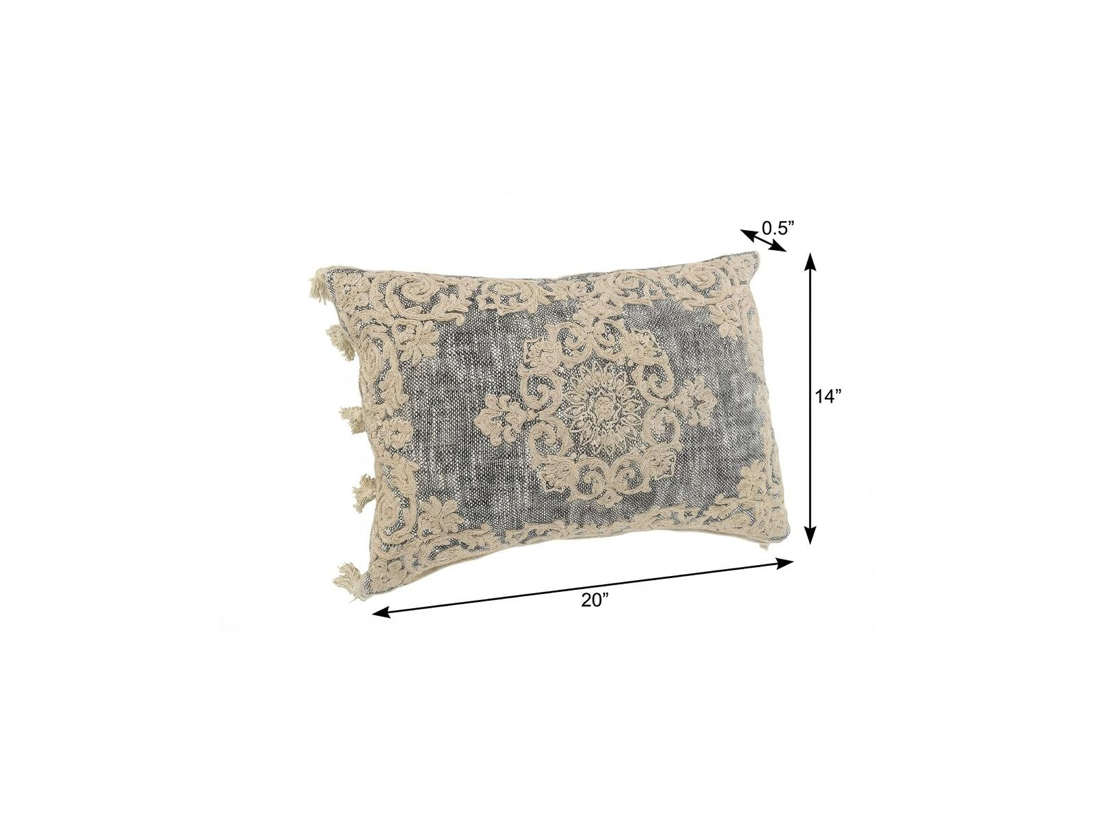 medallion cotton throw pillow cover, cotton throw pillow cover pompoms, cotton throw pillow cover, charcoal beige lumbar medallion cotton, 14" X 20" charcoal beige lumbar |