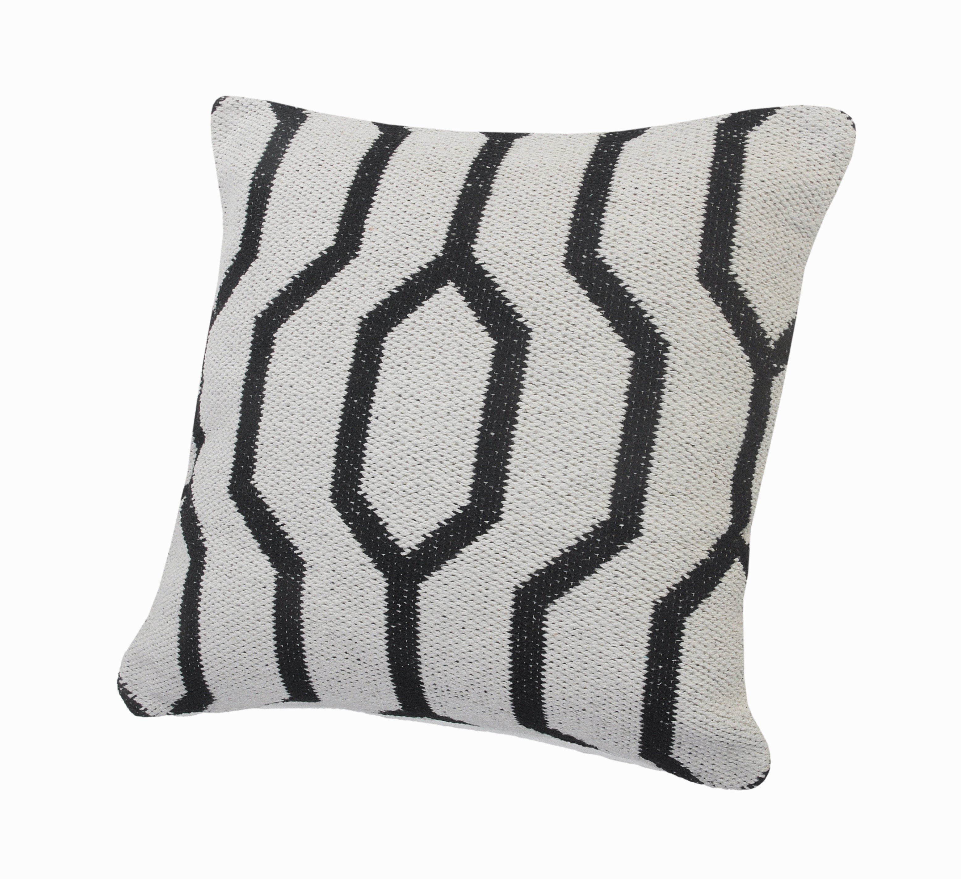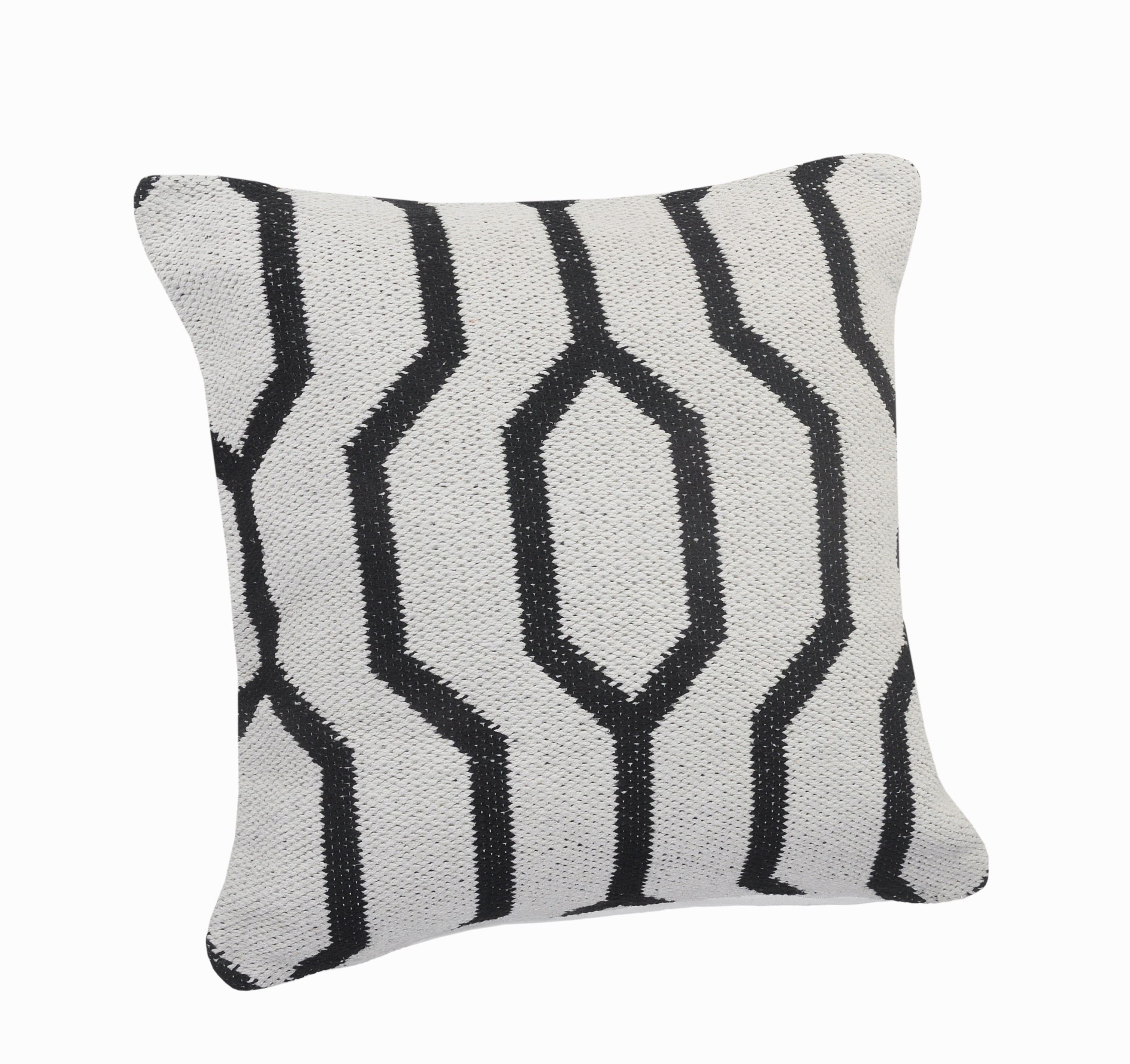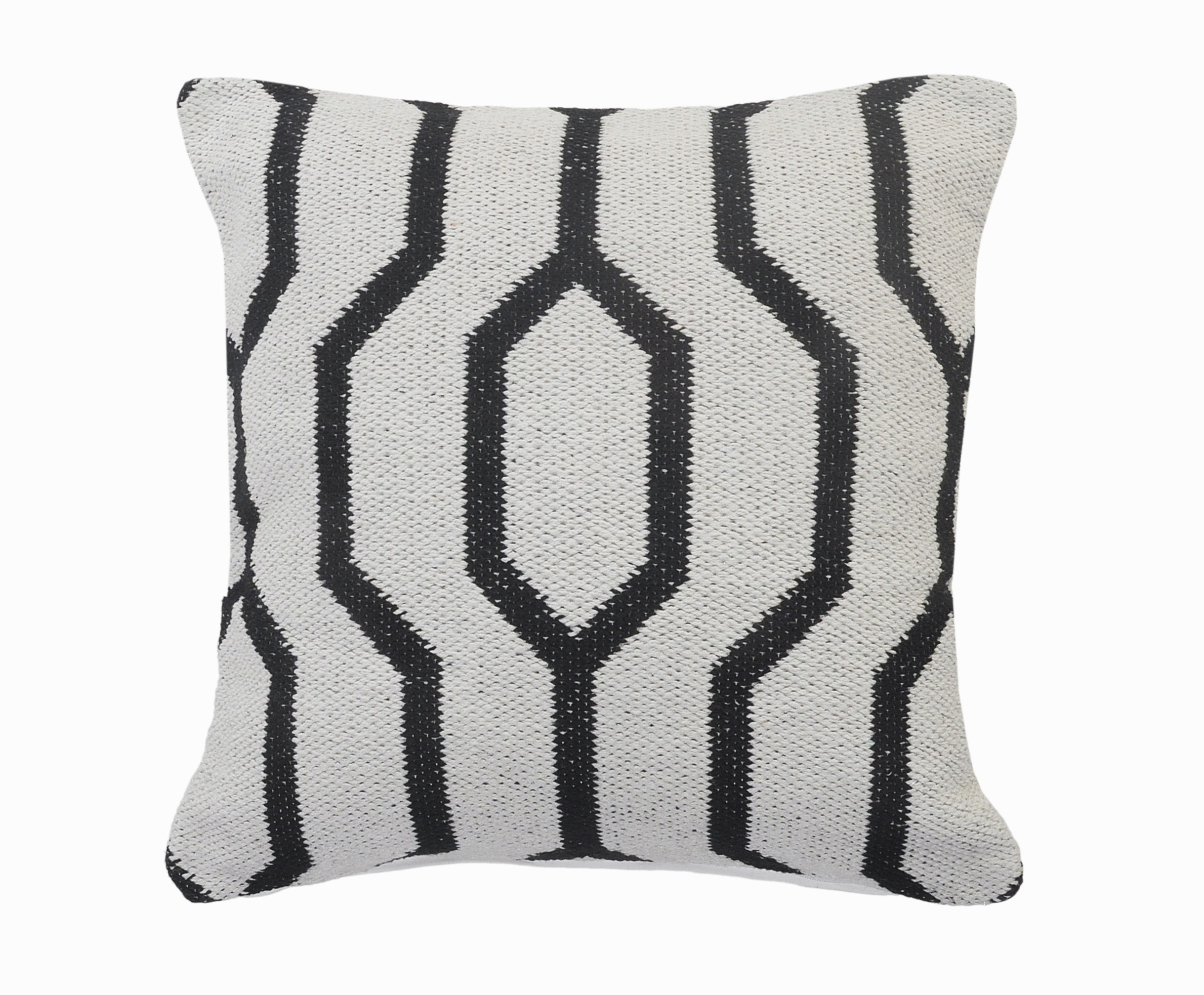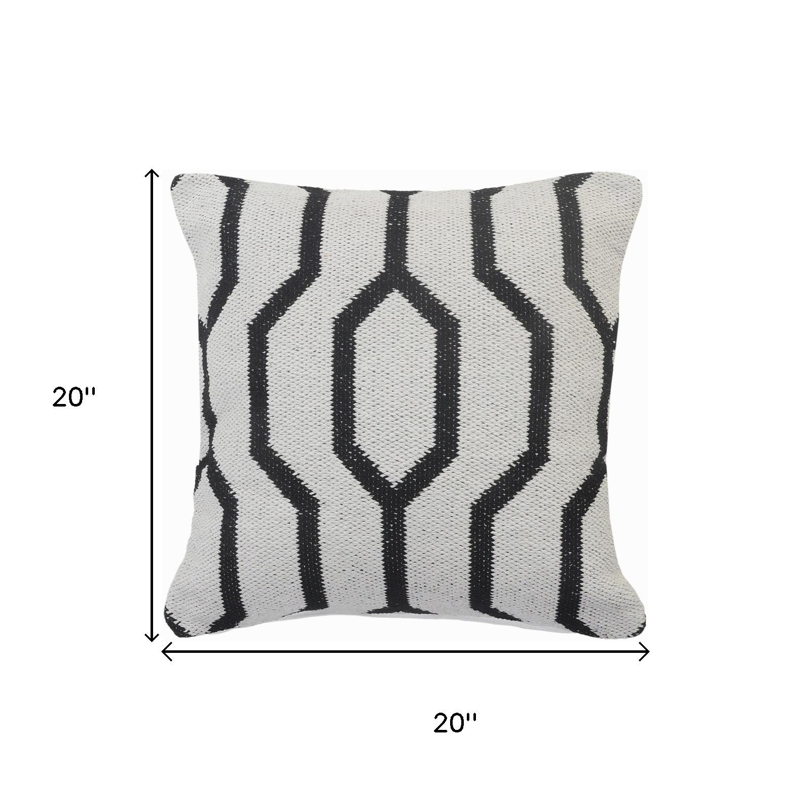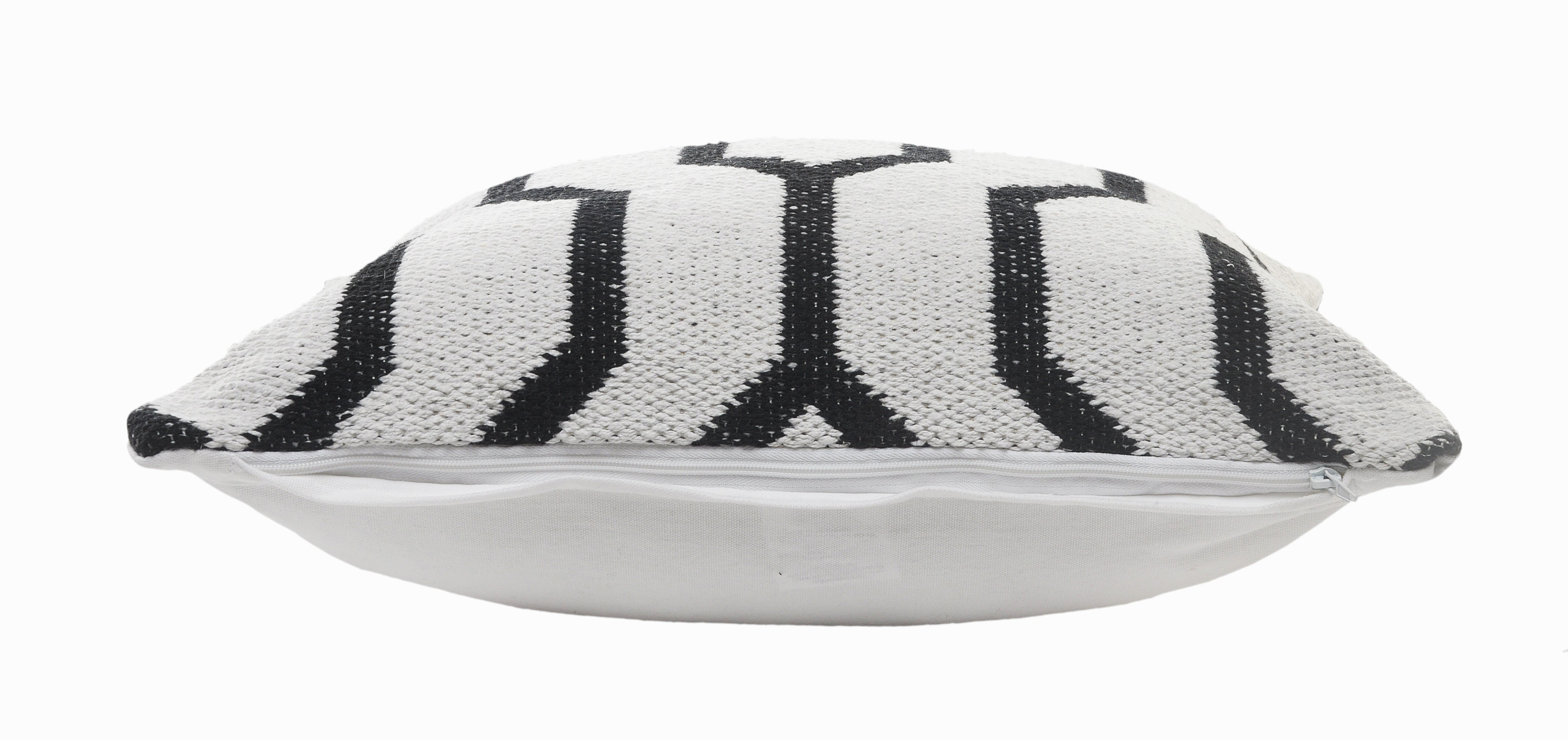 Add an air of fashion to your room and rejuvenate the space with this cute and fashionable 20-inch white and black geometric cotton throw pillow cover. This soft and durable decorative pillow cover is expertly made of high grade, long lasting cotton in a white and black coloration. Decorative pillow covers are a great way to change up the look and feel of your space easily and quickly. Combine with your own fill or insert to add decoration and dimension to your favorite chair, accent your sofa, or to use as part of your bed ensemble. 20.00-inch h x 20.00-inch w x 0.50-inch d.