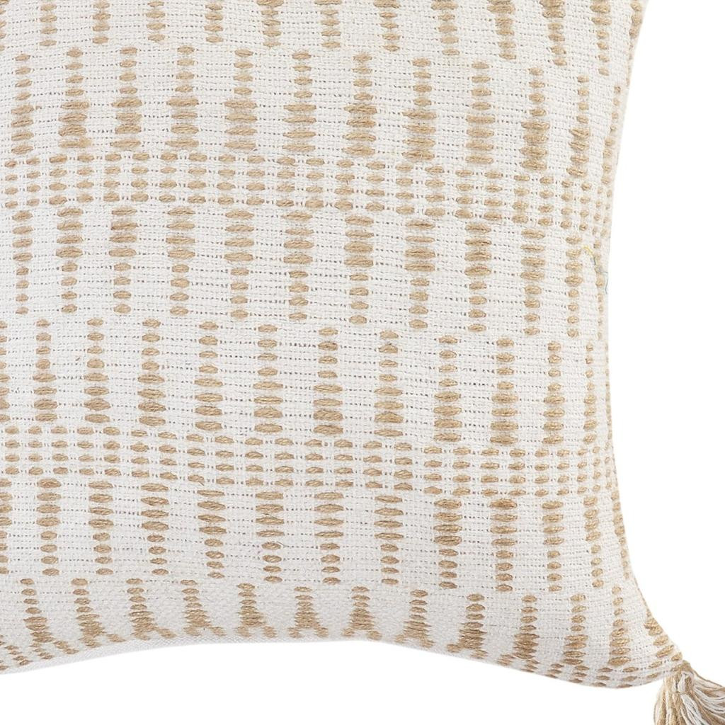 This 20-inch beige and white geometric cotton blend throw pillow cover will add a beautiful decorative accent to your decor. This soft and durable decorative pillow cover is expertly made of high grade, long lasting cotton blend in a beige and white coloration. Pillow covers are a good idea for anyone that loves to decorate or accent their space with color and texture. Combine with your own fill or insert to add decoration and dimension to your favorite chair, accent your sofa, or to use as part of your bed ensemble. 20.00-inch h x 20.00-inch w x 0.25-inch d.