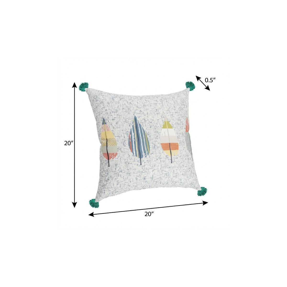 The perfect complement to your sofa, favorite chair, or bed, this 20-inch teal blue and off white floral throw pillow cover with tassels is a great decorative accent. Durable teal blue and off white polyester has been used to give this pillow cover a beautiful look that will stand the test of time. Charming decorative tassels give this design texture along with a hand-crafted look and feel. Decorative pillow covers are a great way to change up the look and feel of your space easily and quickly. Combine with your own fill or insert to add decoration and dimension to your favorite chair, accent your sofa, or to use as part of your bed ensemble. 20.00-inch h x 20.00-inch w x 0.50-inch d.