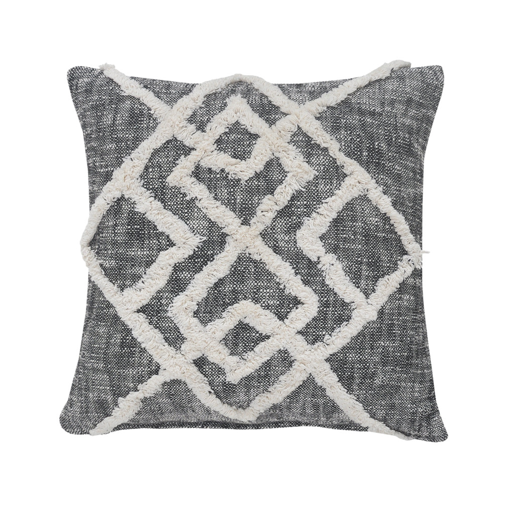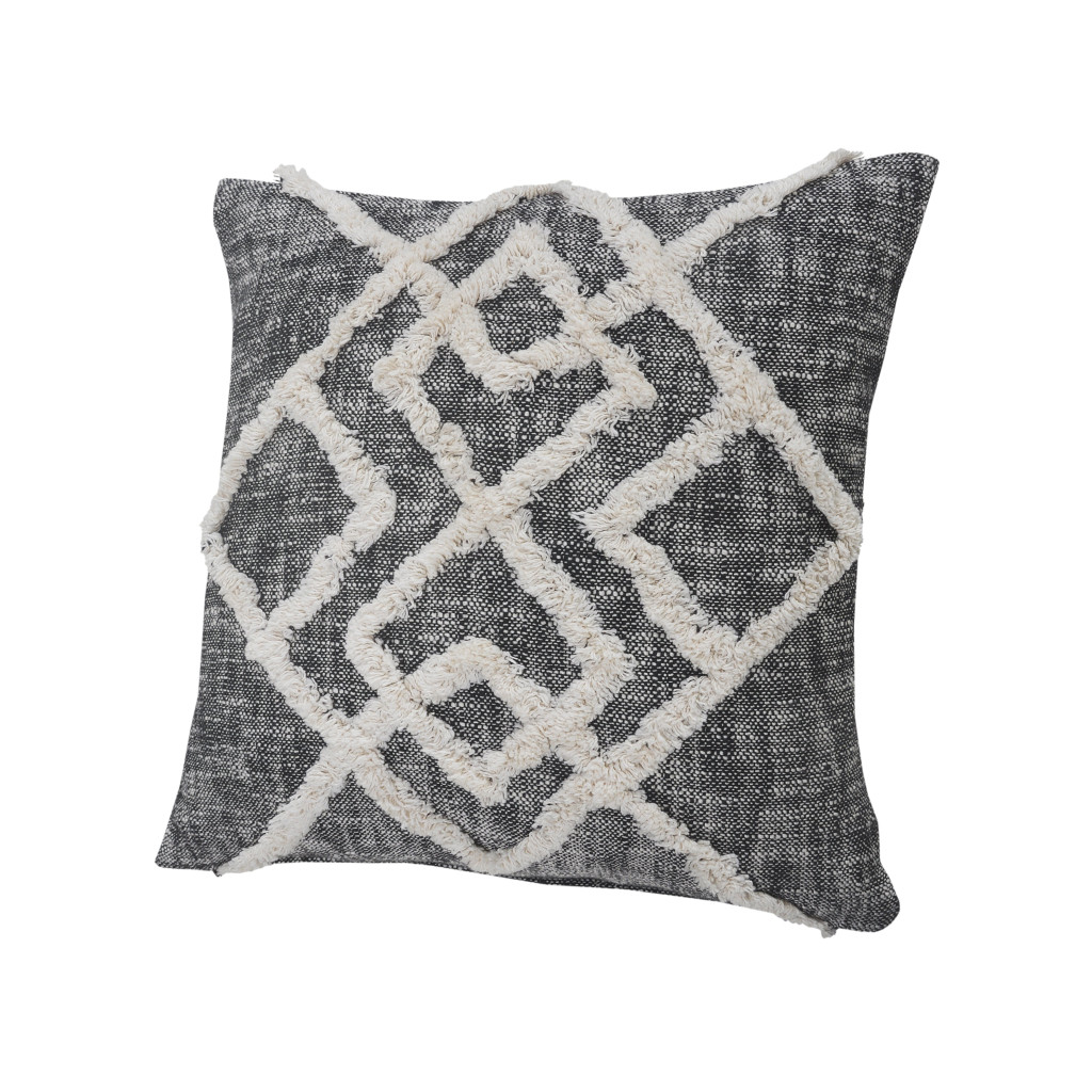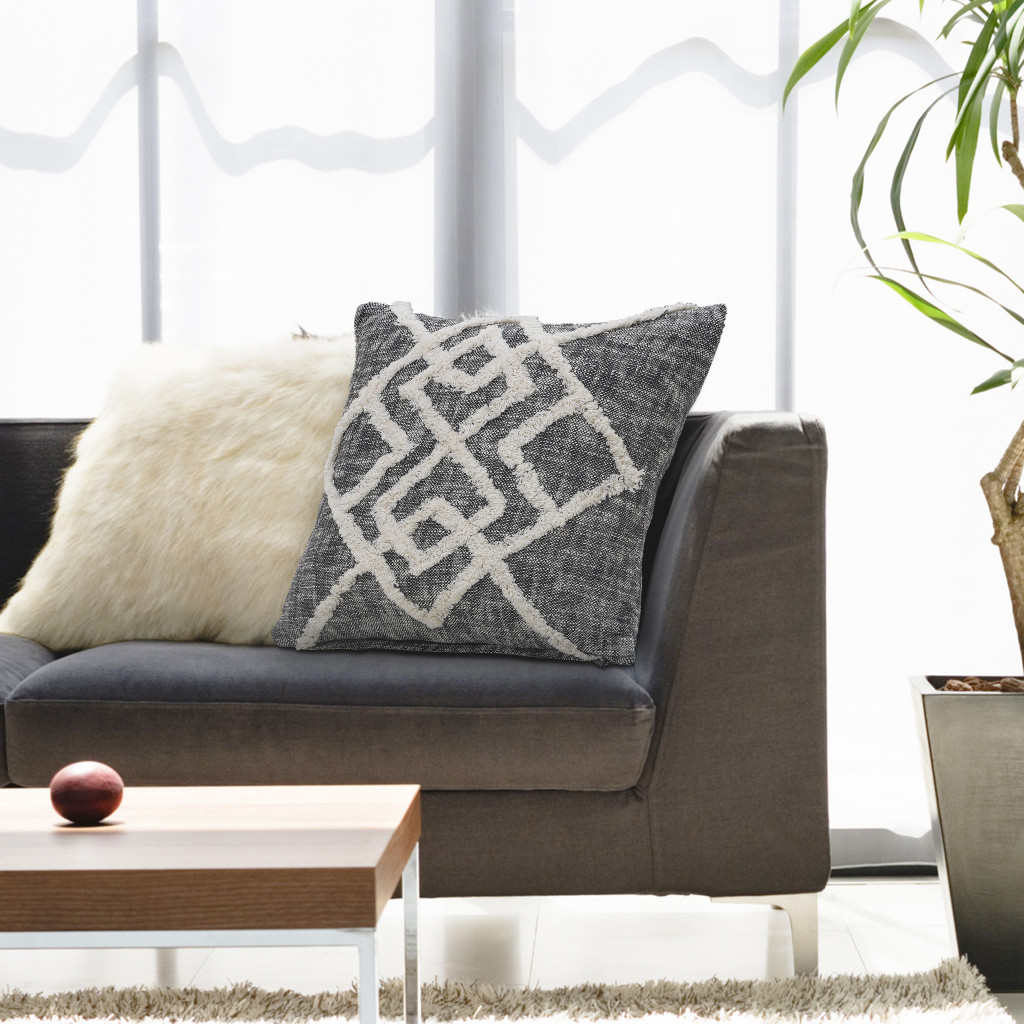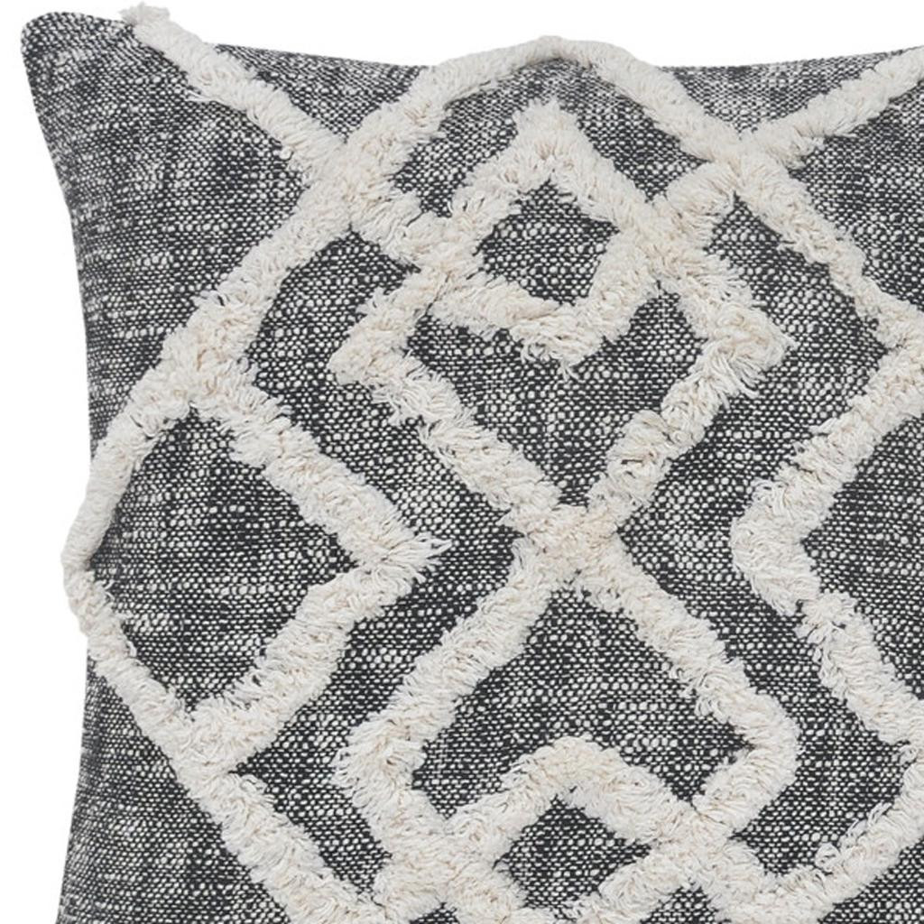 The perfect complement to your sofa, favorite chair, or bed, this 20-inch black and cream geometric cotton throw pillow cover is a great decorative accent. This soft and durable decorative pillow cover is expertly made of high grade, long lasting cotton in a black and cream coloration. Decorative pillow covers are a great way to change up the look and feel of your space easily and quickly. Combine with your own fill or insert to add decoration and dimension to your favorite chair, accent your sofa, or to use as part of your bed ensemble. 20.00-inch h x 20.00-inch w x 0.50-inch d.