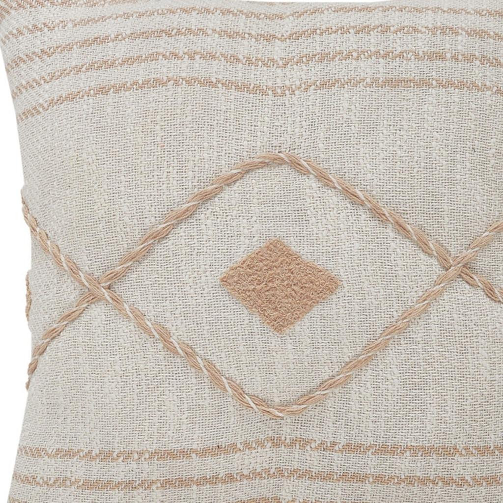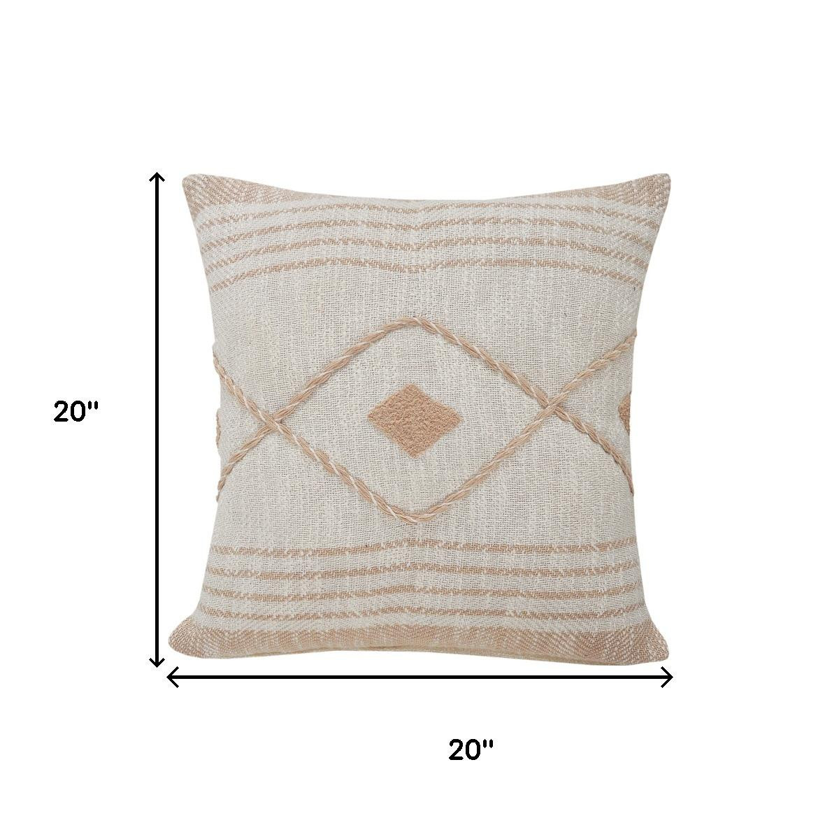 Add an air of fashion to your room and rejuvenate the space with this cute and fashionable 20-inch tan and white beach geometric cotton throw pillow cover. The tan and white coloring of the extremely durable and long lasting cotton pillow cover will add dimension and texture to your space. Pillow covers are a good idea for anyone that loves to decorate or accent their space with color and texture. Combine with your own fill or insert to add decoration and dimension to your favorite chair, accent your sofa, or to use as part of your bed ensemble. 20.00-inch h x 20.00-inch w x 0.50-inch d.