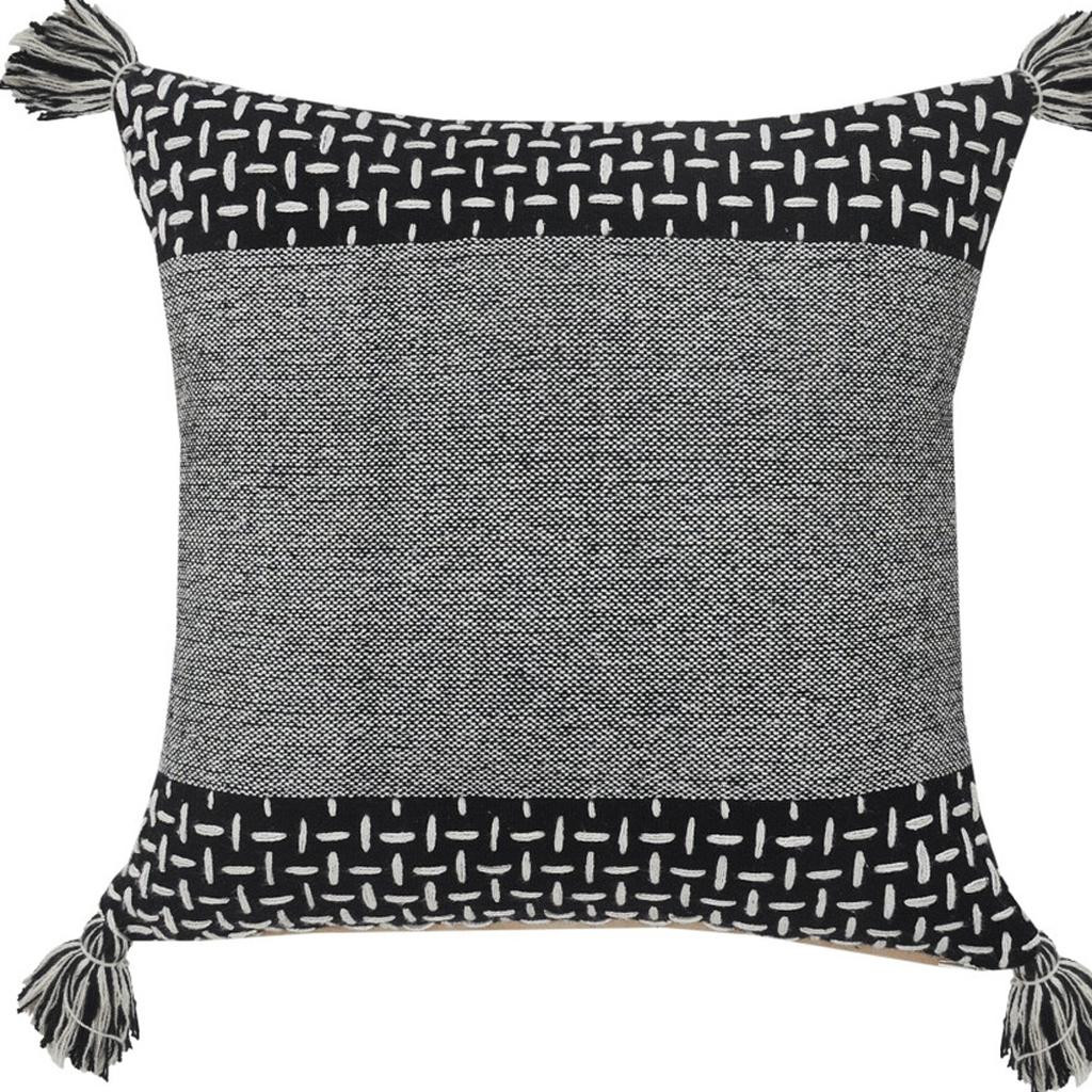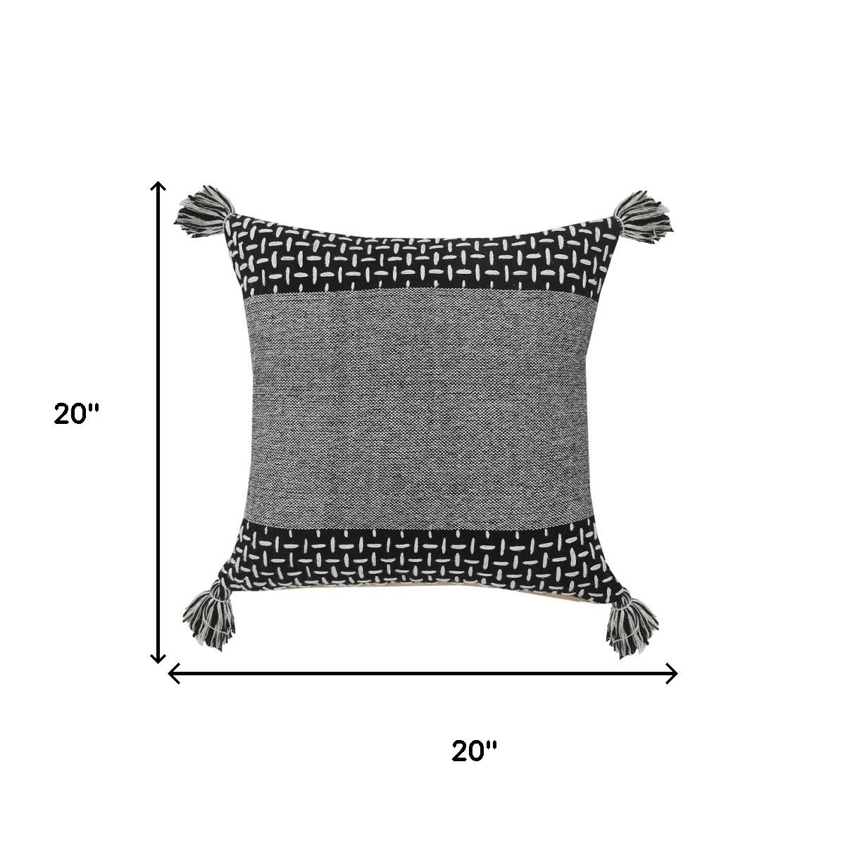 Unique and decorative, this comfortable 20-inch black and white geometric cotton throw pillow cover will leave a lasting impression. This soft and durable decorative pillow cover is expertly made of high grade, long lasting cotton in a black and white coloration. Pillow covers are a good idea for anyone that loves to decorate or accent their space with color and texture. Combine with your own fill or insert to add decoration and dimension to your favorite chair, accent your sofa, or to use as part of your bed ensemble. 20.00-inch h x 20.00-inch w x 0.25-inch d.