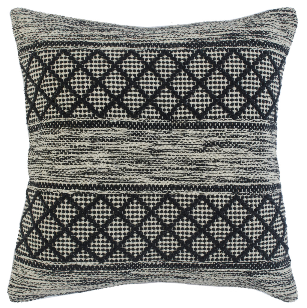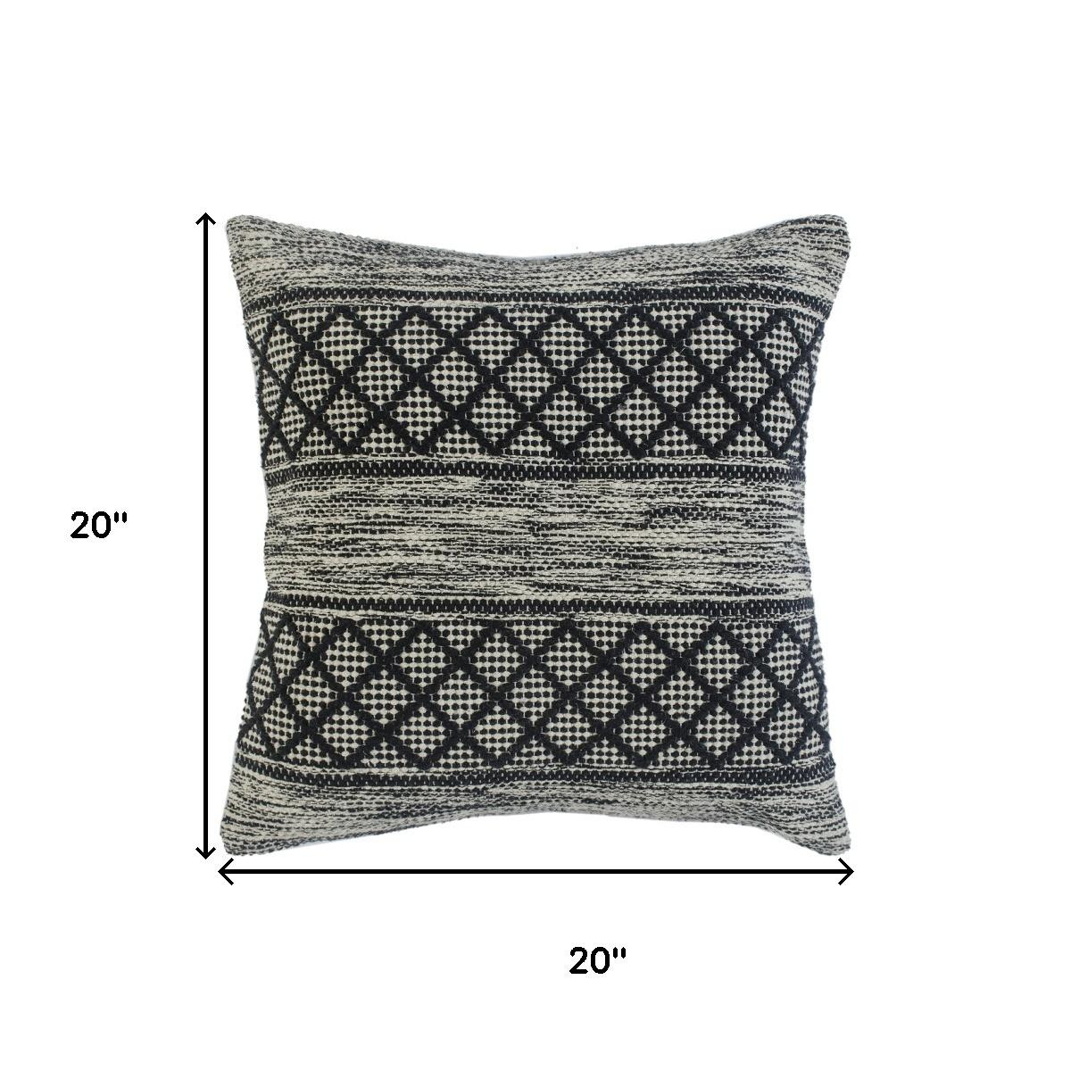 The 20-inch black and white diamond cotton blend throw pillow cover is the perfect decorative accessory for your home. This black and white hued, accent pillow cover, represents quality construction, expertly made from durable cotton blend that is not only long lasting but soft to the touch as well. Decorative pillow covers are a great way to change up the look and feel of your space easily and quickly. Combine with your own fill or insert to add decoration and dimension to your favorite chair, accent your sofa, or to use as part of your bed ensemble. 20.00-inch h x 20.00-inch w x 0.50-inch d.