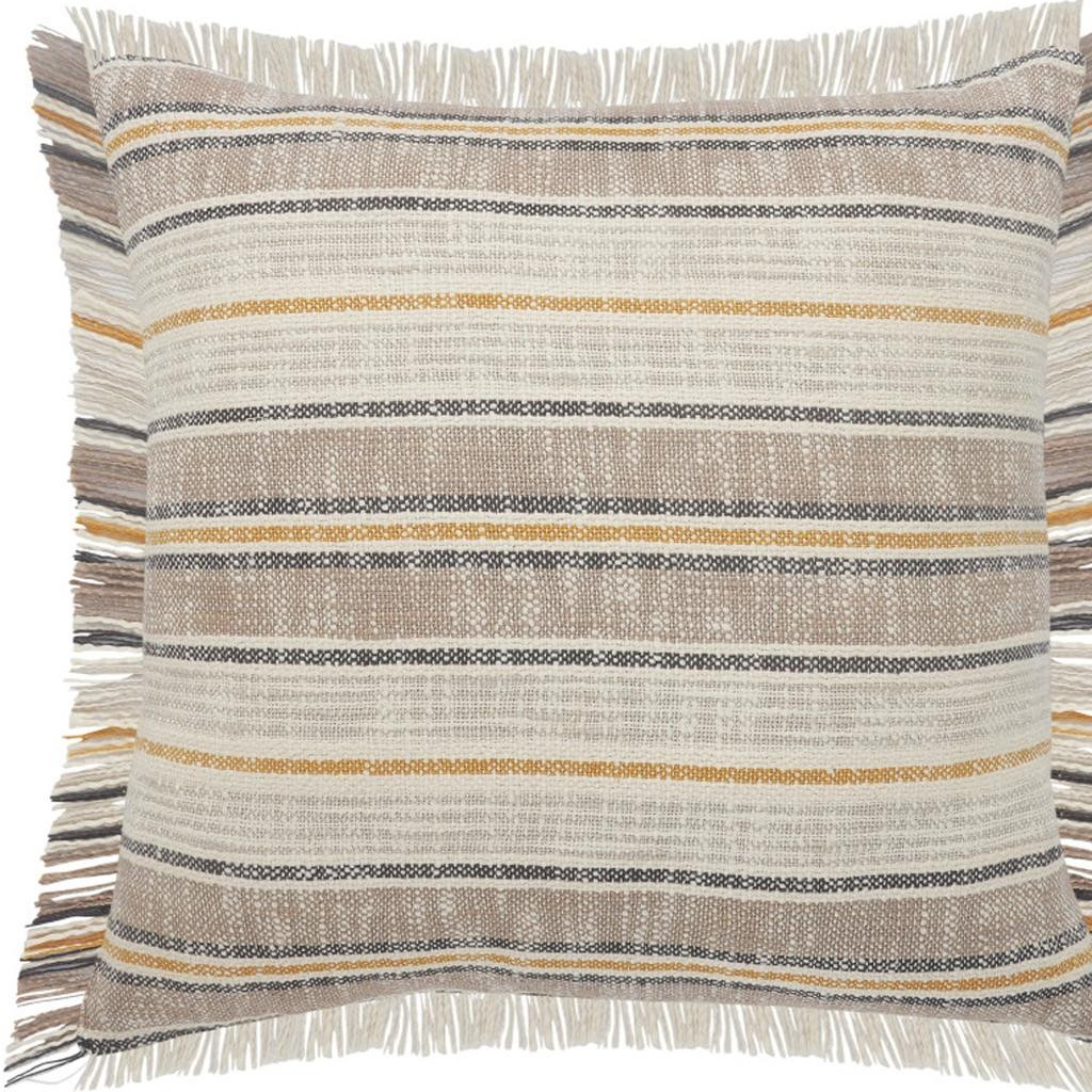 Bring a bit of fashion and zip to your space with this eye-catching and comfy 20-inch white and tan striped cotton throw pillow cover. This white and tan hued, accent pillow cover, represents quality construction, expertly made from durable cotton that is not only long lasting but soft to the touch as well. Decorative pillow covers are a great way to change up the look and feel of your space easily and quickly. Combine with your own fill or insert to add decoration and dimension to your favorite chair, accent your sofa, or to use as part of your bed ensemble. 20.00-inch h x 20.00-inch w x 0.50-inch d.
