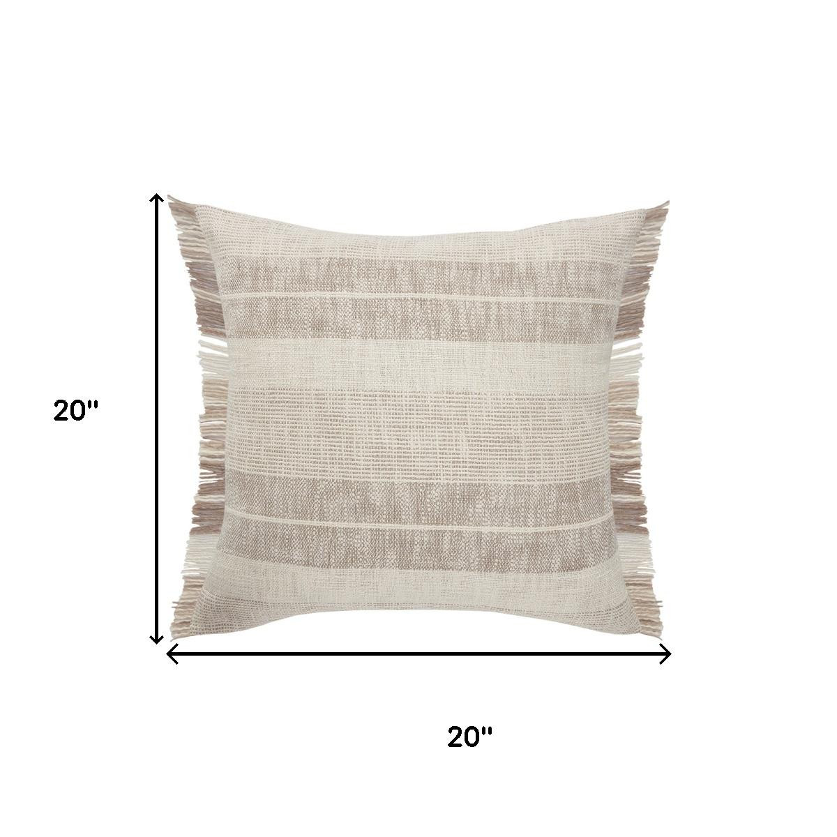 The 20-inch beige and ivory striped cotton throw pillow cover is the perfect decorative accessory for your home. The beige and ivory coloring of the extremely durable and long lasting cotton pillow cover will add dimension and texture to your space. Decorative pillow covers are a great way to change up the look and feel of your space easily and quickly. Combine with your own fill or insert to add decoration and dimension to your favorite chair, accent your sofa, or to use as part of your bed ensemble. 20.00-inch h x 20.00-inch w x 0.50-inch d.
