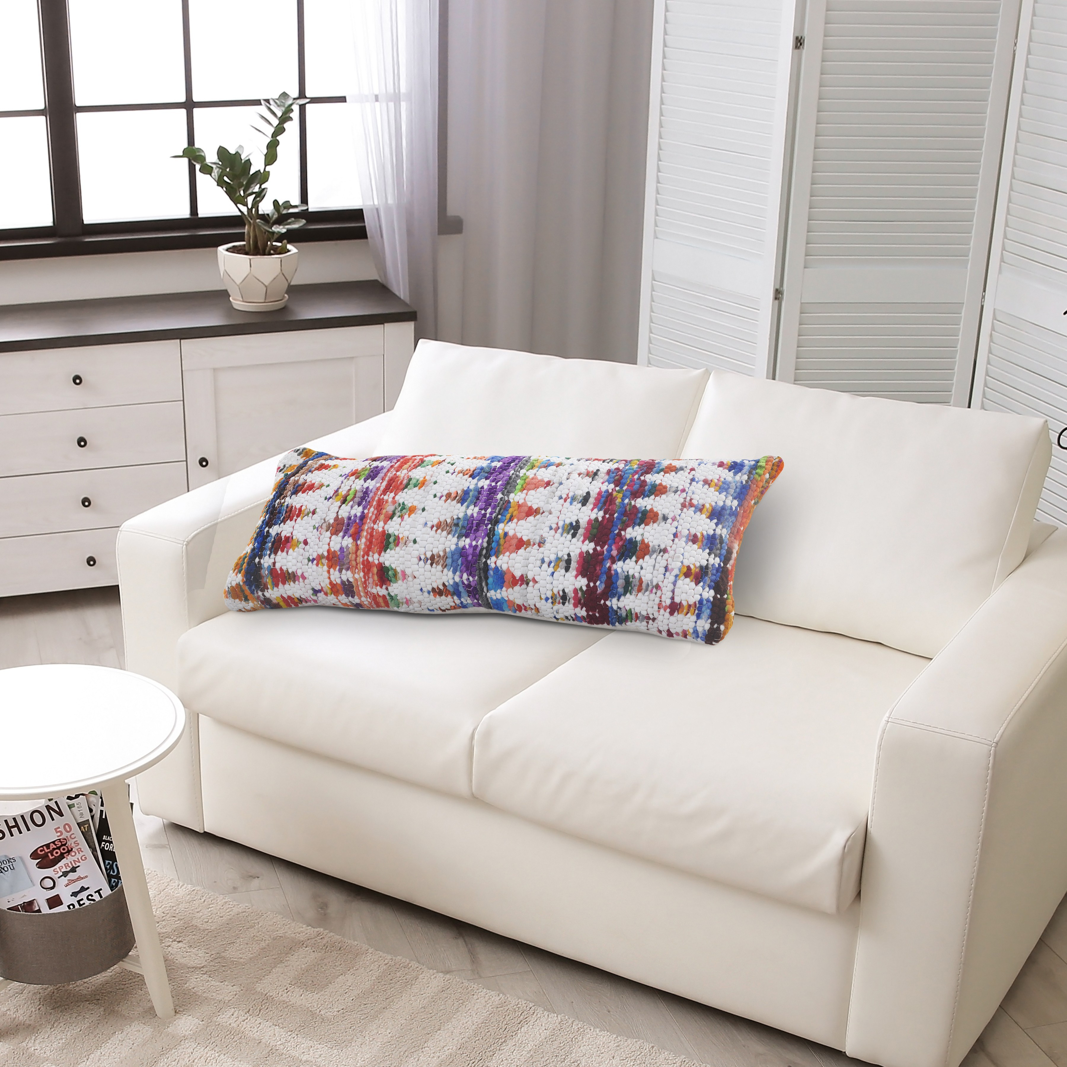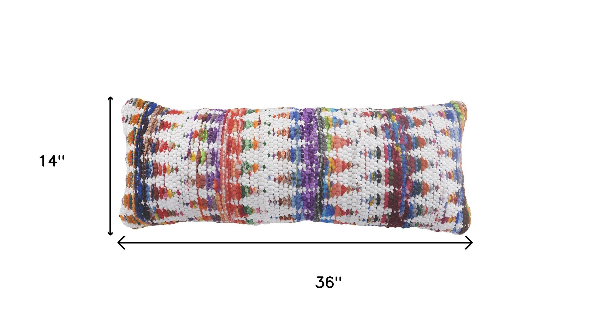 This 14-inch x 36-inch white purple and red lumbar geometric cotton blend throw pillow cover will add a beautiful decorative accent to your decor. This soft and durable decorative pillow cover is expertly made of high grade, long lasting cotton blend in a white, purple, and red coloration. Pillow covers are a good idea for anyone that loves to decorate or accent their space with color and texture. Combine with your own fill or insert to add decoration and dimension to your favorite chair, accent your sofa, or to use as part of your bed ensemble. 14.00-inch h x 36.00-inch w x 0.50-inch d.
