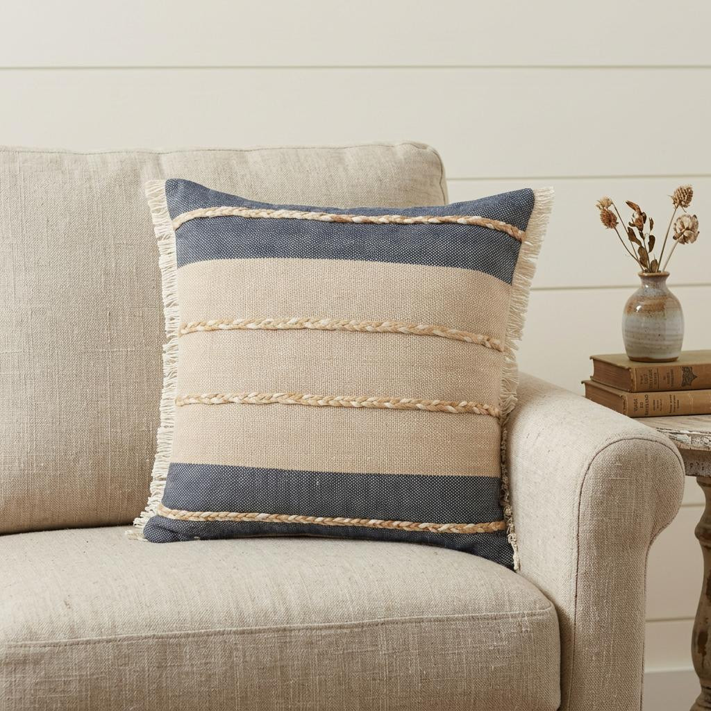 cotton blend throw pillow cover, striped cotton blend throw pillow, blend throw pillow cover, throw pillow cover fringe texture, blend throw pillow cover fringe |