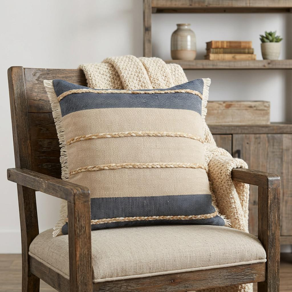 cotton blend throw pillow cover, blend throw pillow cover, striped cotton blend throw pillow, cotton blend throw pillow, throw pillow cover fringe texture |