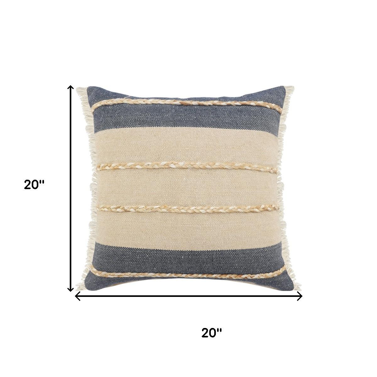 Bring a bit of fashion and zip to your space with this eye-catching and comfy 20-inch beige and blue beach striped cotton blend throw pillow cover. This soft and durable decorative pillow cover is expertly made of high grade, long lasting cotton blend in a beige and blue coloration. Decorative pillow covers are a great way to change up the look and feel of your space easily and quickly. Combine with your own fill or insert to add decoration and dimension to your favorite chair, accent your sofa, or to use as part of your bed ensemble. 20.00-inch h x 20.00-inch w x 0.25-inch d.