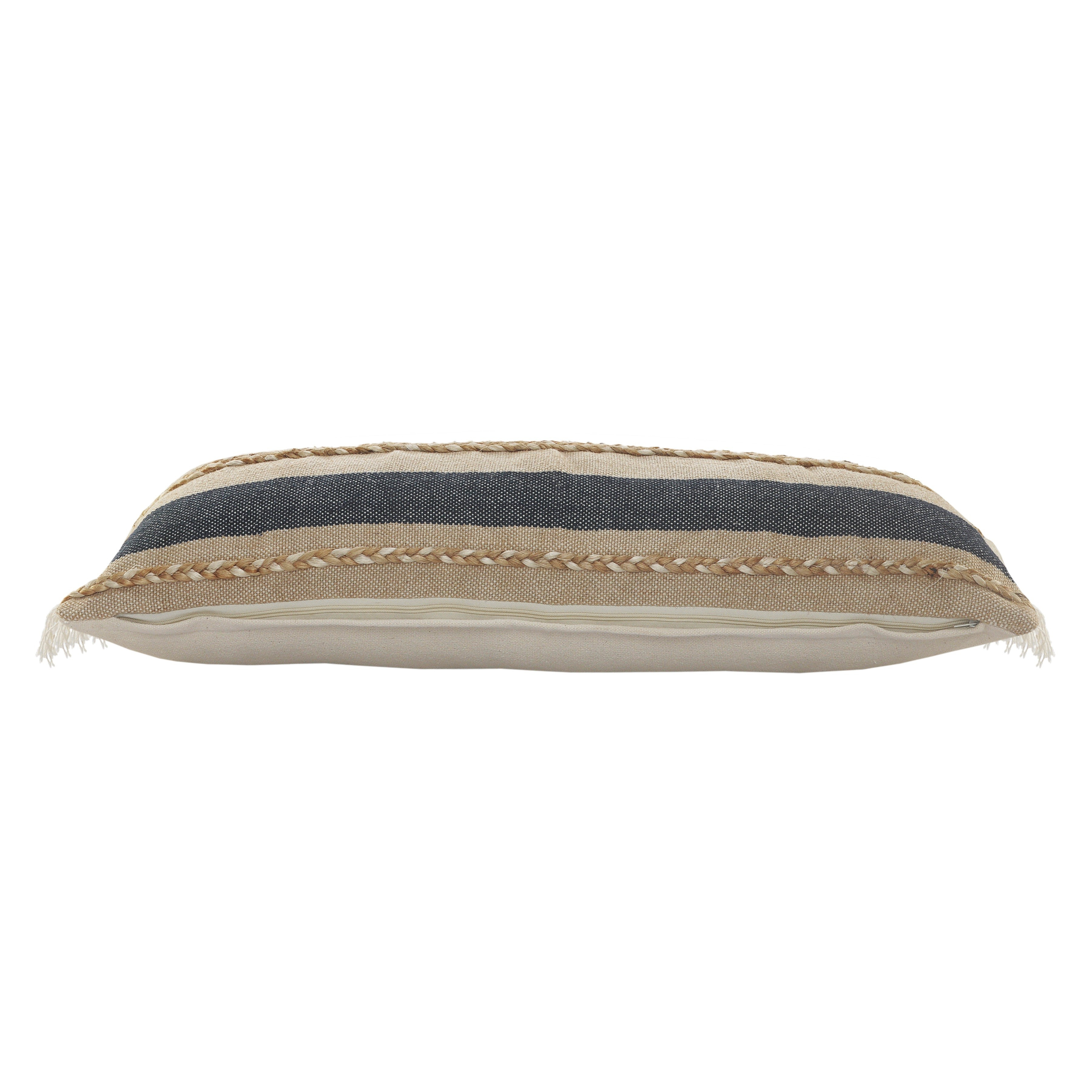 Bring a bit of fashion and zip to your space with this eye-catching and comfy 14-inch x 36-inch beige and blue lumbar beach striped cotton blend throw pillow cover. This beige and blue colored decorative pillow cover is made from high grade cotton blend that is durable and long lasting. Decorative pillow covers are a great way to change up the look and feel of your space easily and quickly. Combine with your own fill or insert to add decoration and dimension to your favorite chair, accent your sofa, or to use as part of your bed ensemble. 14.00-inch h x 36.00-inch w x 0.25-inch d.