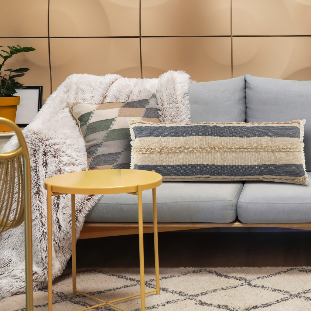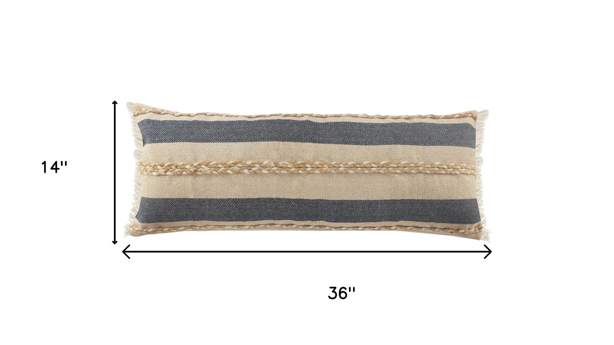cotton blend throw pillow cover, blend throw pillow cover, striped cotton blend throw pillow, 14" X 36" beige blue lumbar beach, 14" X 36" beige blue |