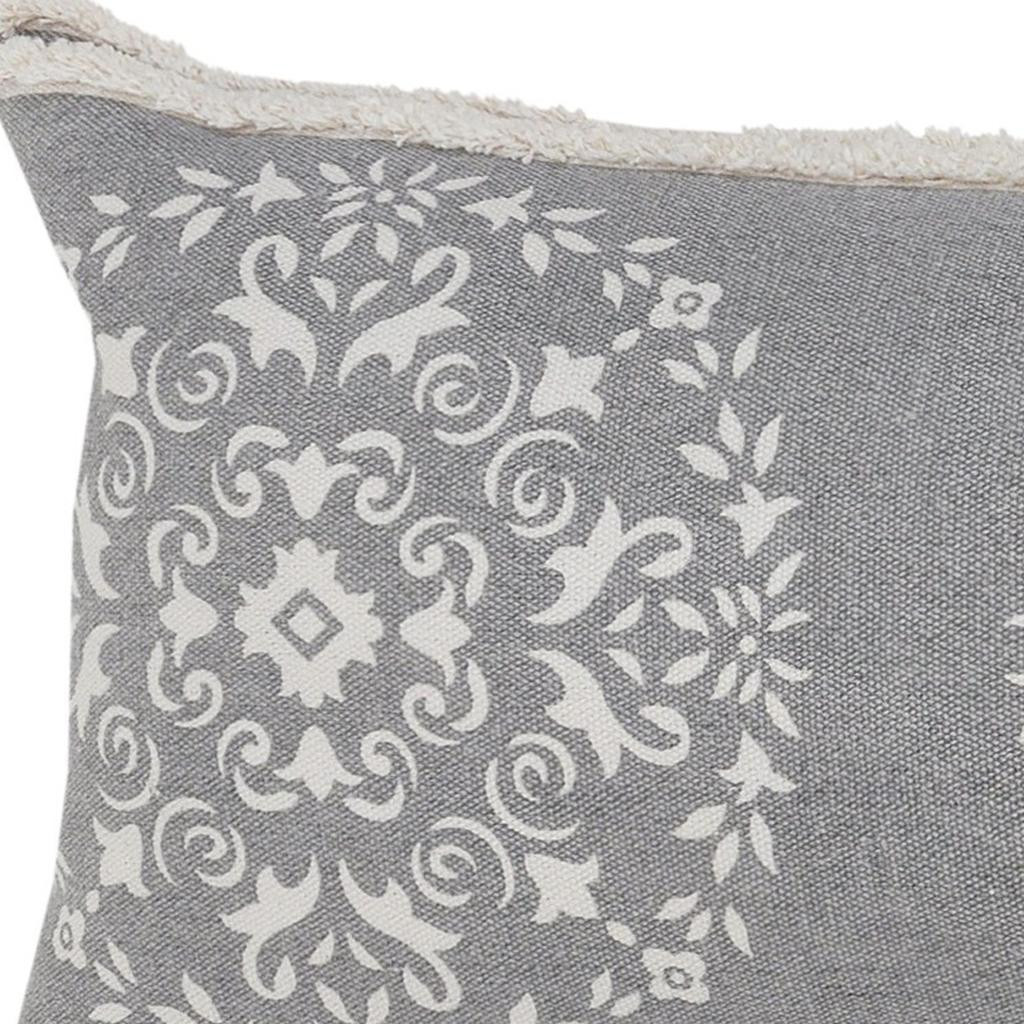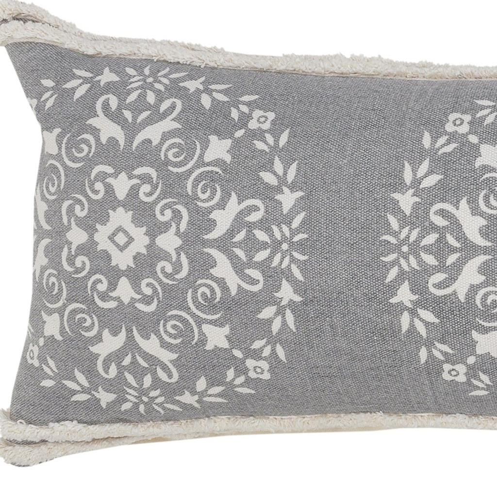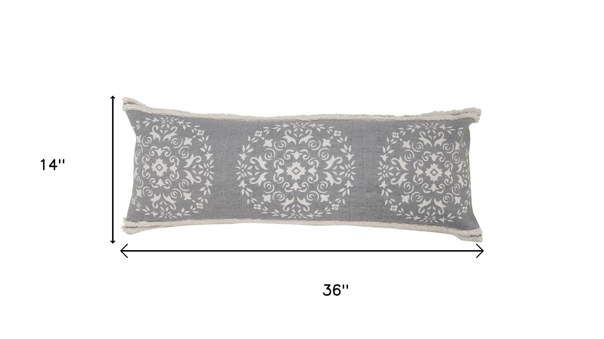 medallion cotton throw pillow cover, cotton throw pillow cover, lumbar medallion cotton throw pillow, gray white lumbar medallion cotton, 14" X 36" gray white lumbar |