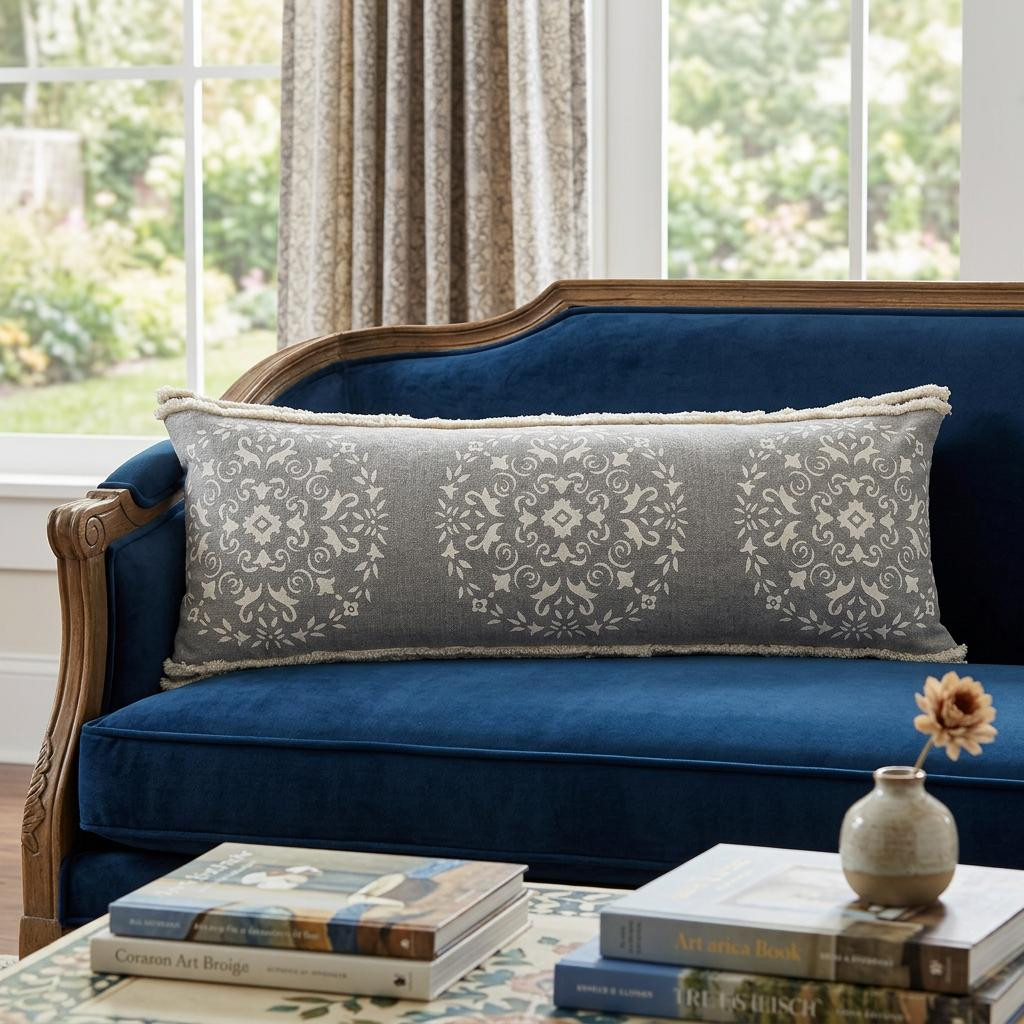 The perfect complement to your sofa, favorite chair, or bed, this 14-inch x 36-inch gray and white lumbar medallion cotton throw pillow cover with texture is a great decorative accent. The gray and white coloring of the extremely durable and long lasting cotton pillow cover will add dimension and texture to your space. Decorative pillow covers are a great way to change up the look and feel of your space easily and quickly. Combine with your own fill or insert to add decoration and dimension to your favorite chair, accent your sofa, or to use as part of your bed ensemble. 14.00-inch h x 36.00-inch w x 0.50-inch d.
