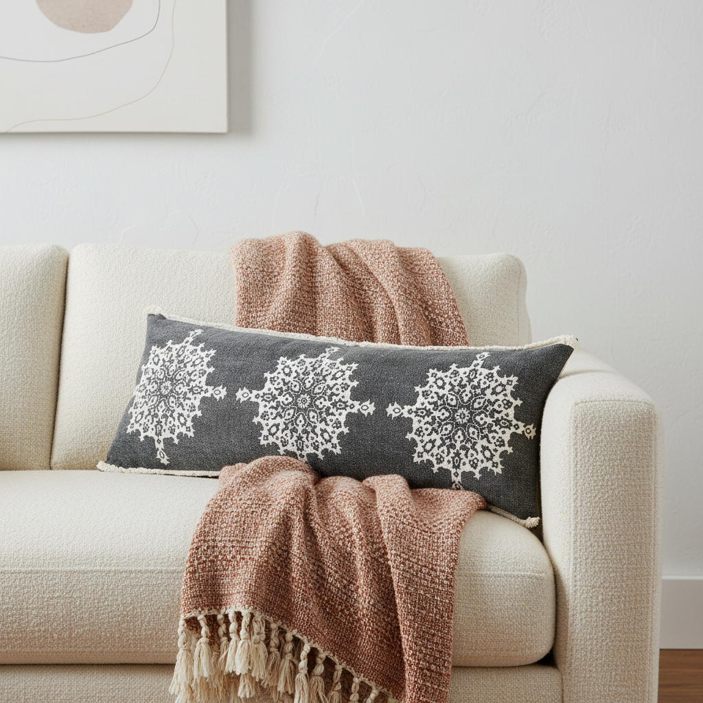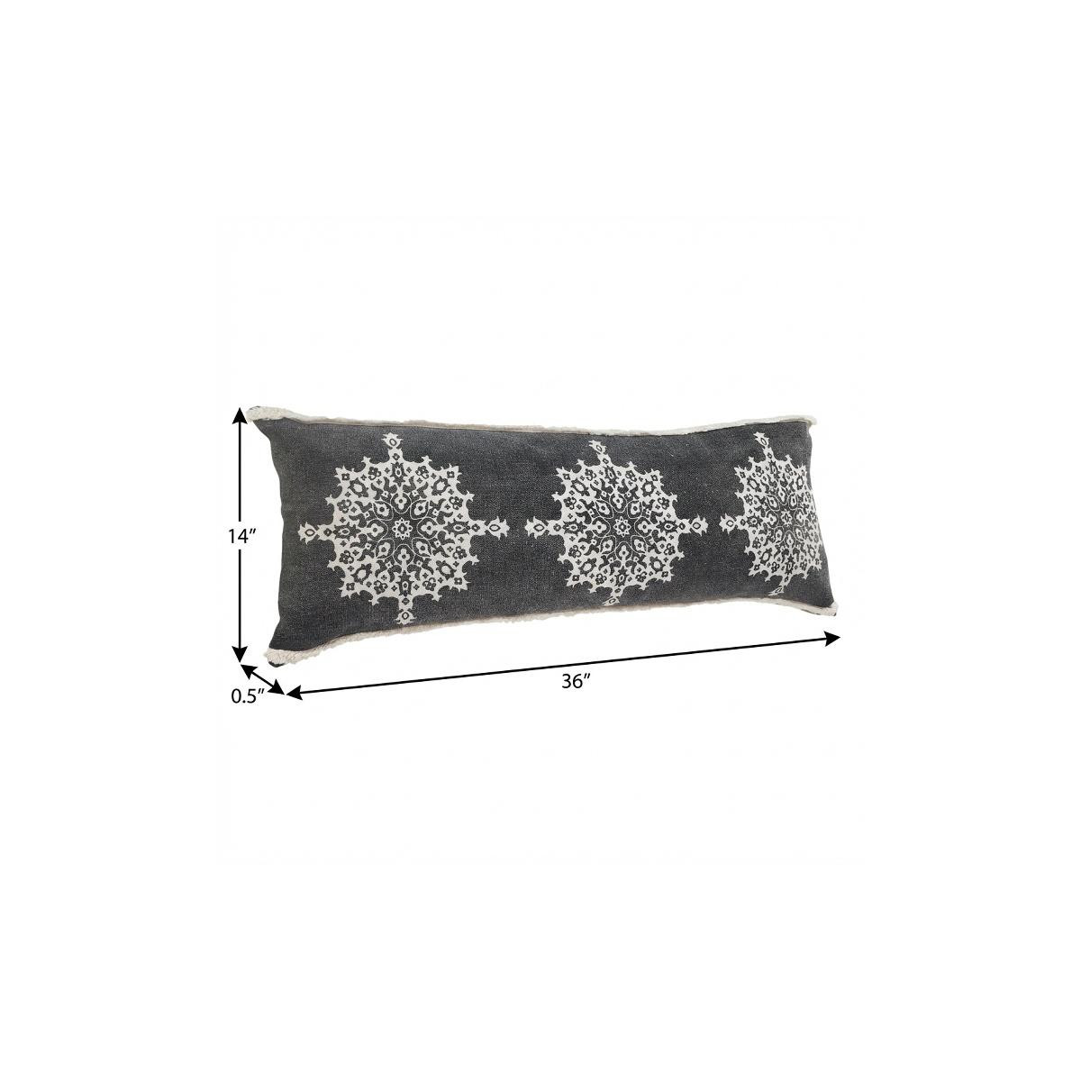 Unique and decorative, this comfortable 14-inch x 36-inch charcoal white and cream lumbar medallion cotton throw pillow cover with tufts will leave a lasting impression. This charcoal, white, and cream hued, accent pillow cover, represents quality construction, expertly made from durable cotton that is not only long lasting but soft to the touch as well. Charming decorative tufts give this design texture along with a hand-crafted look and feel. Decorative pillow covers are a great way to change up the look and feel of your space easily and quickly. Combine with your own fill or insert to add decoration and dimension to your favorite chair, accent your sofa, or to use as part of your bed ensemble. 14.00-inch h x 36.00-inch w x 0.50-inch d.