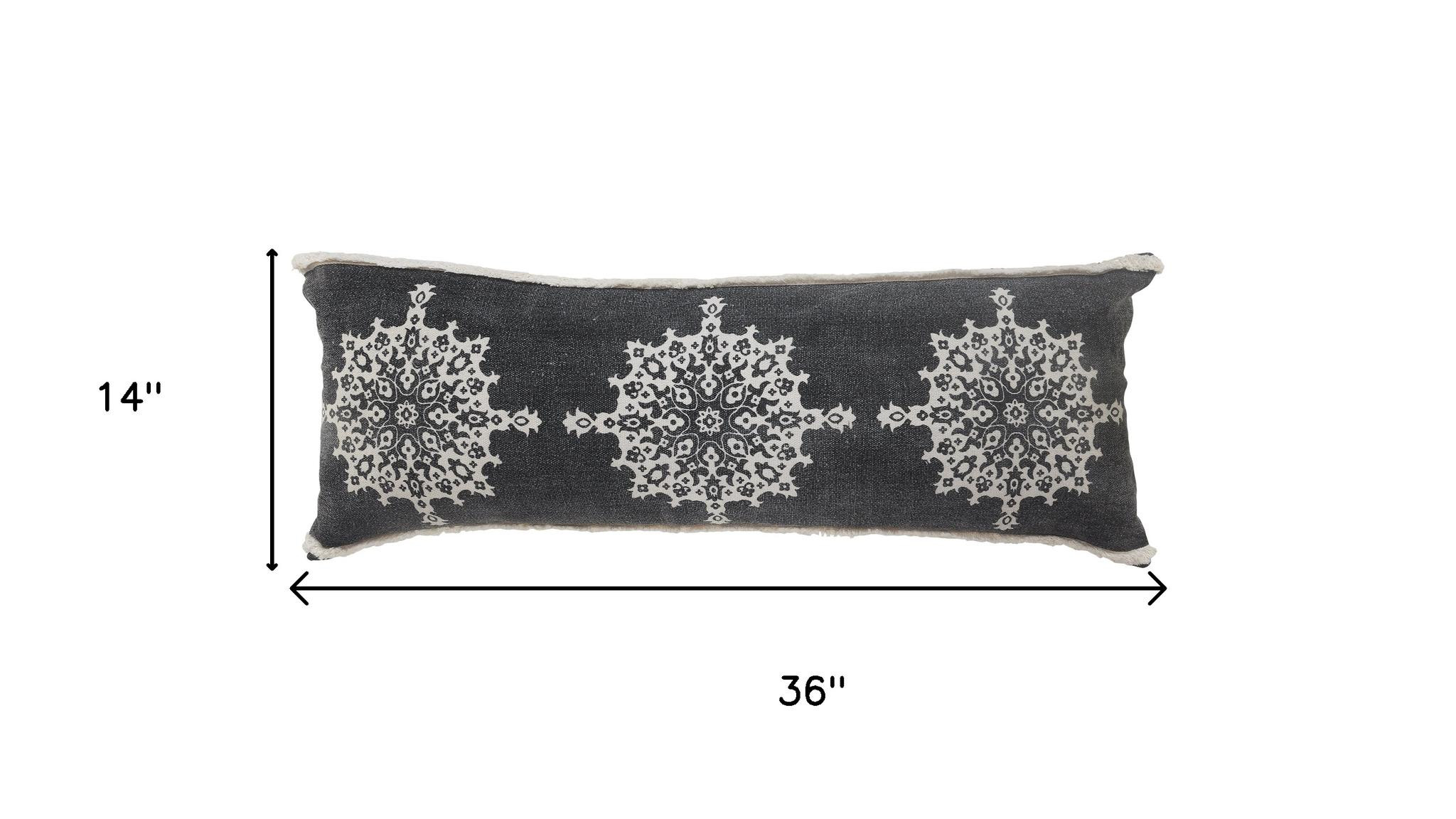 medallion cotton throw pillow cover, cotton throw pillow cover, lumbar medallion cotton throw pillow, gray white lumbar medallion cotton, 14" X 36" gray white lumbar |