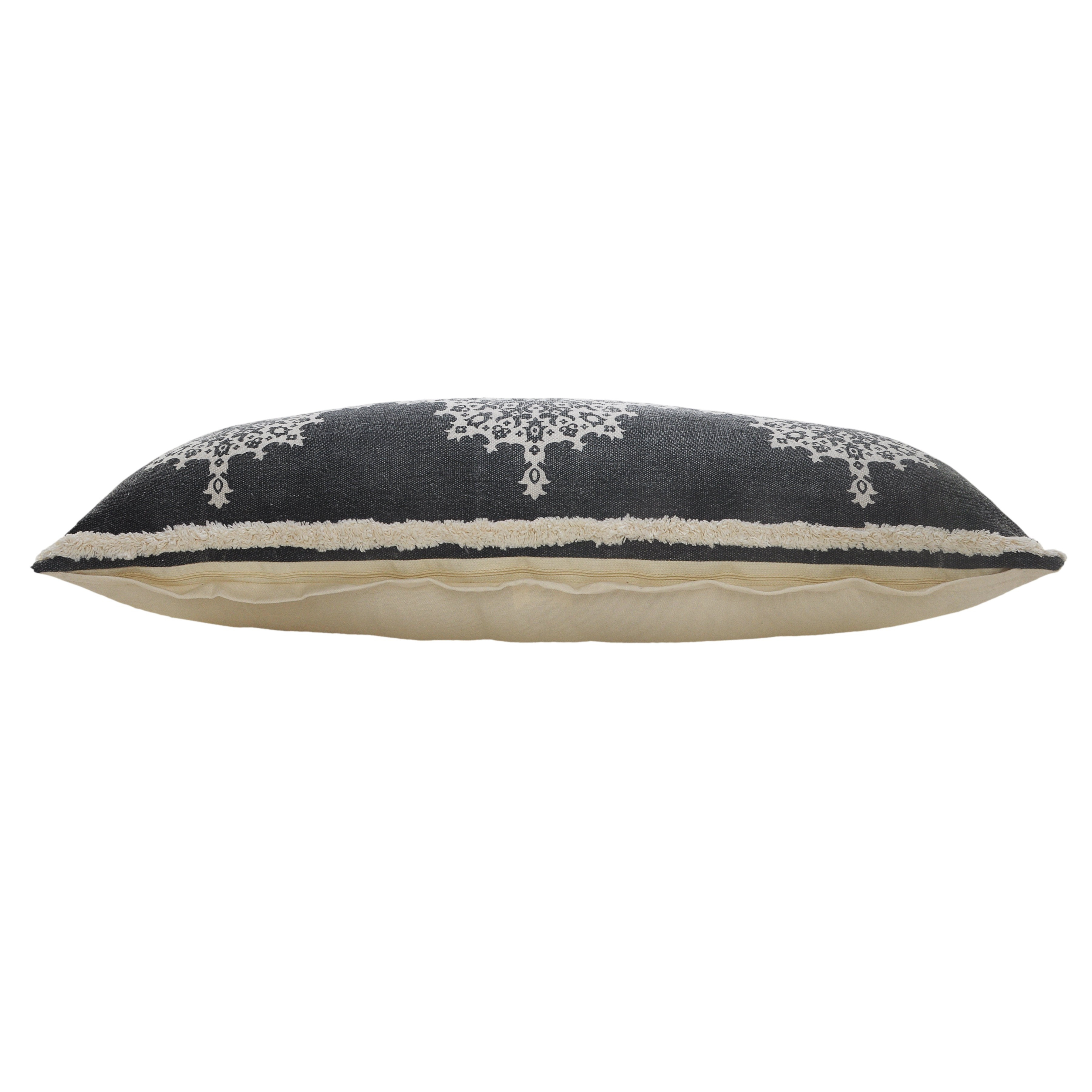 Add an air of fashion to your room and rejuvenate the space with this cute and fashionable 14-inch x 36-inch gray and white lumbar medallion cotton throw pillow cover. This gray and white colored decorative pillow cover is made from high grade cotton that is durable and long lasting. Decorative pillow covers are a great way to change up the look and feel of your space easily and quickly. Combine with your own fill or insert to add decoration and dimension to your favorite chair, accent your sofa, or to use as part of your bed ensemble. 14.00-inch h x 36.00-inch w x 0.50-inch d.