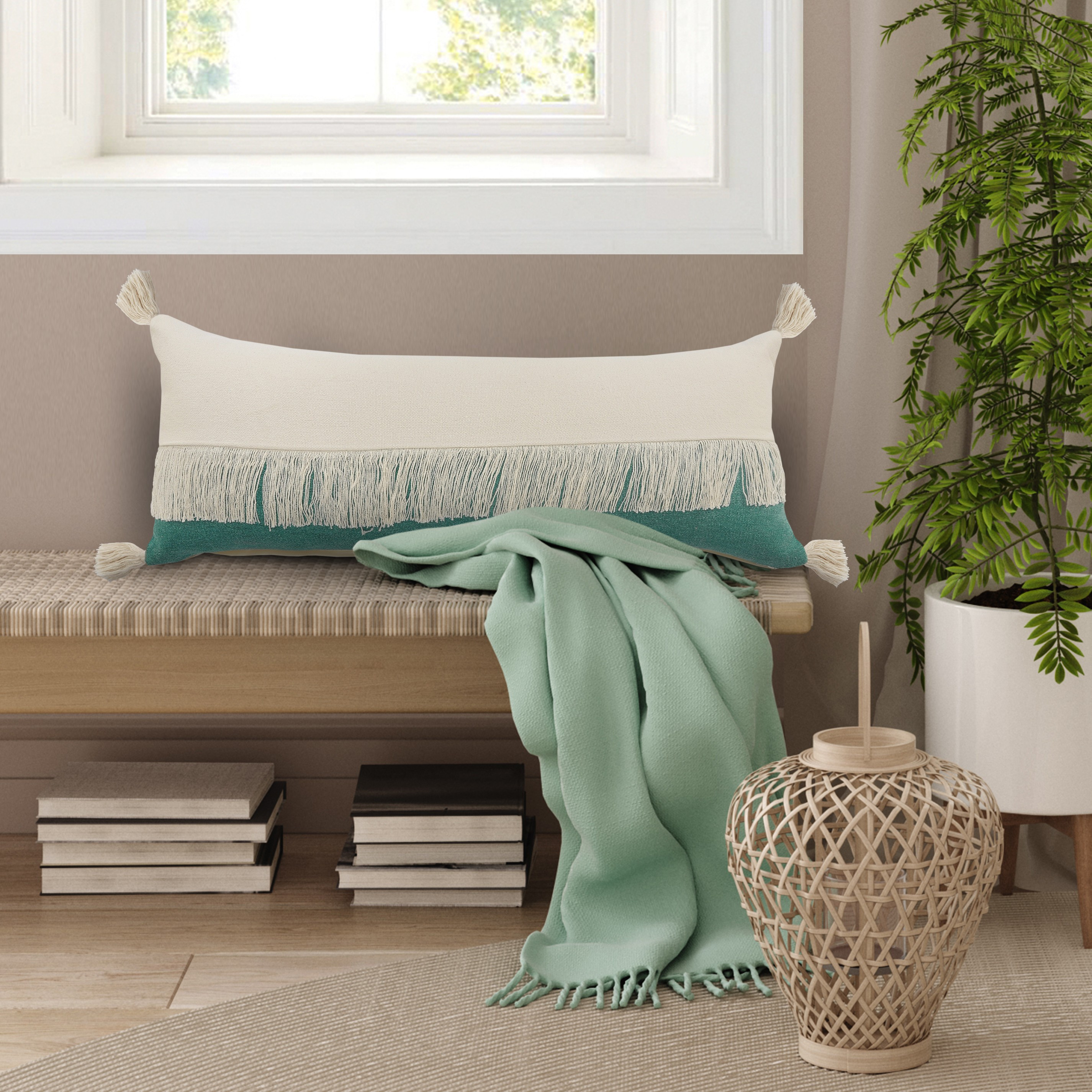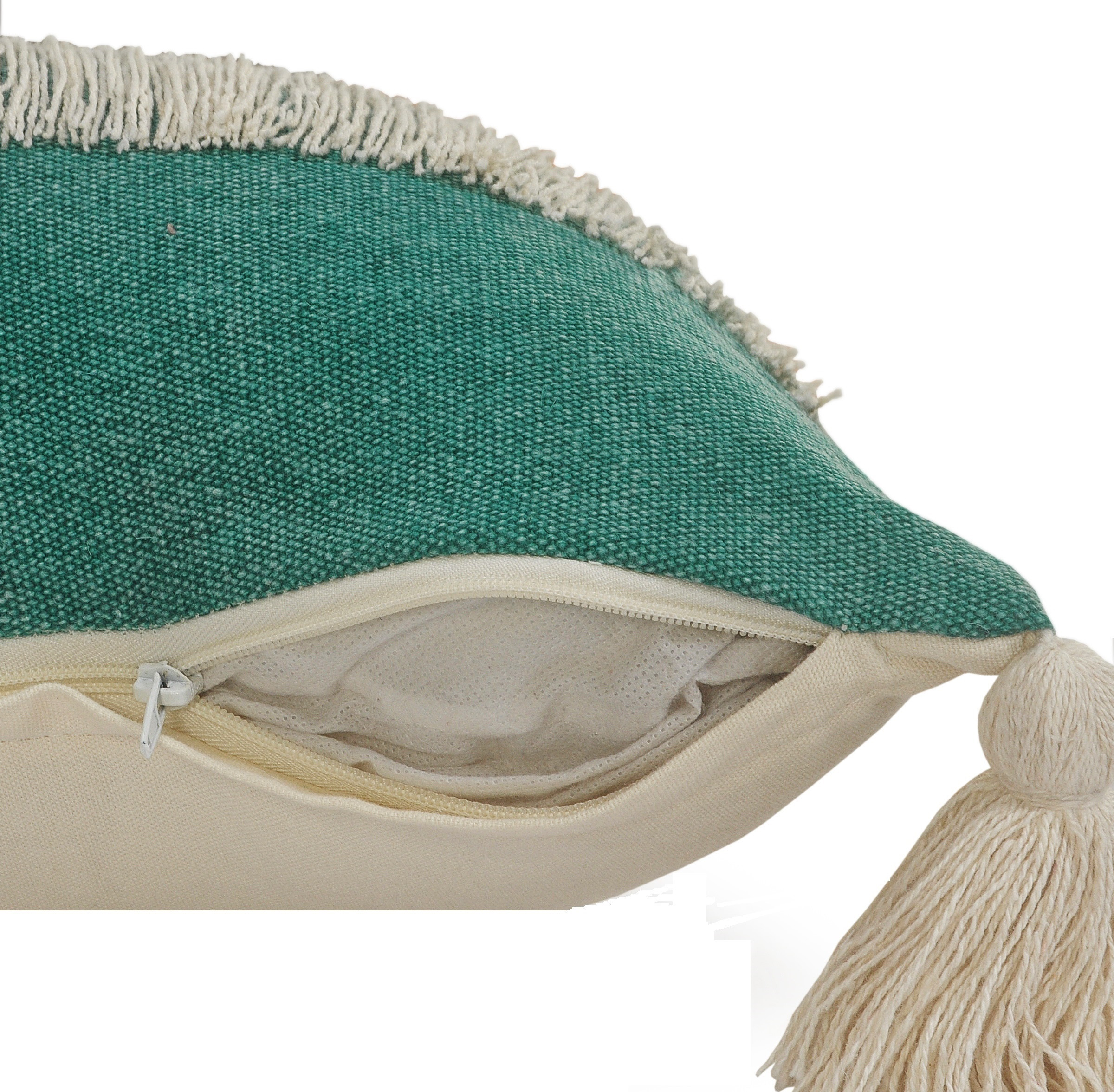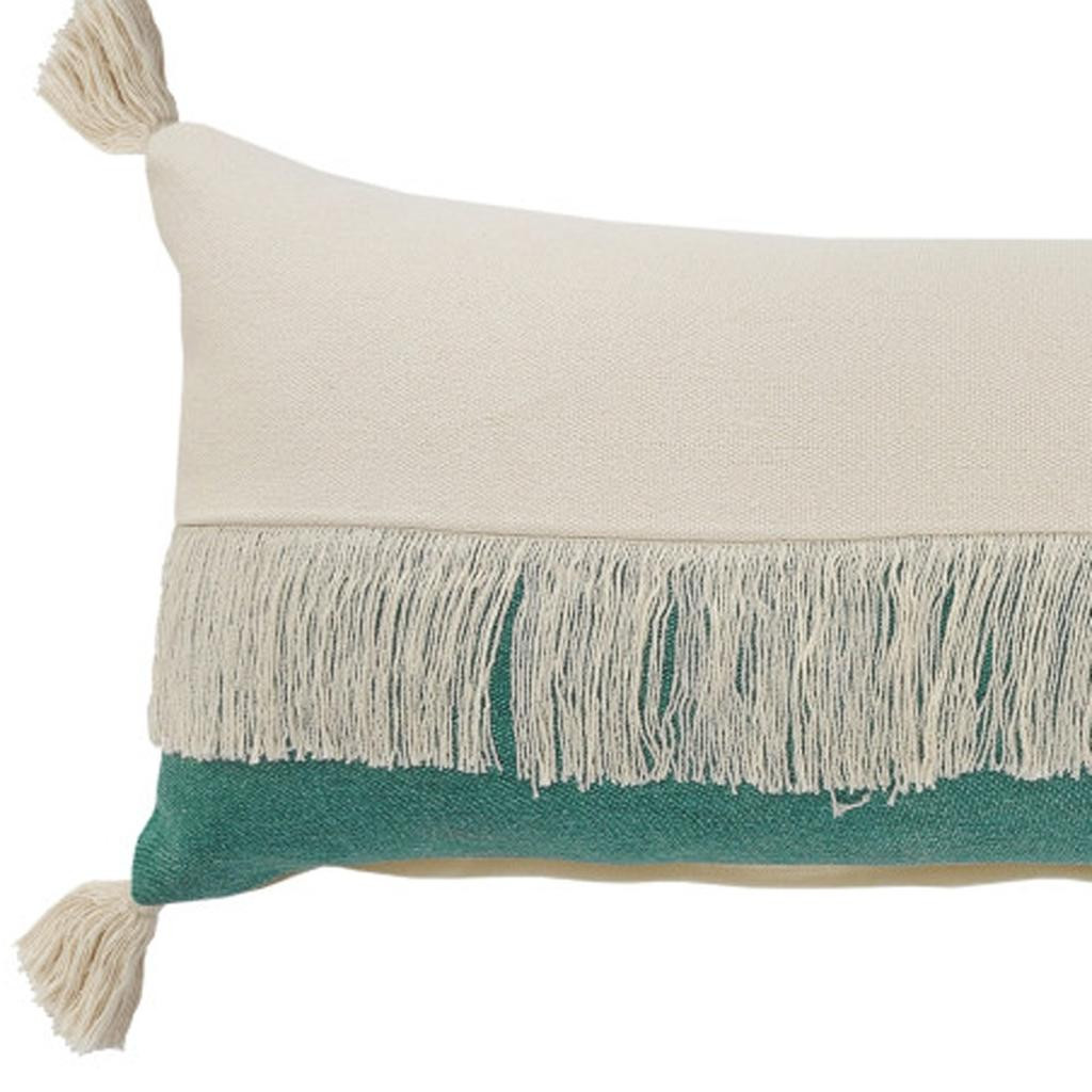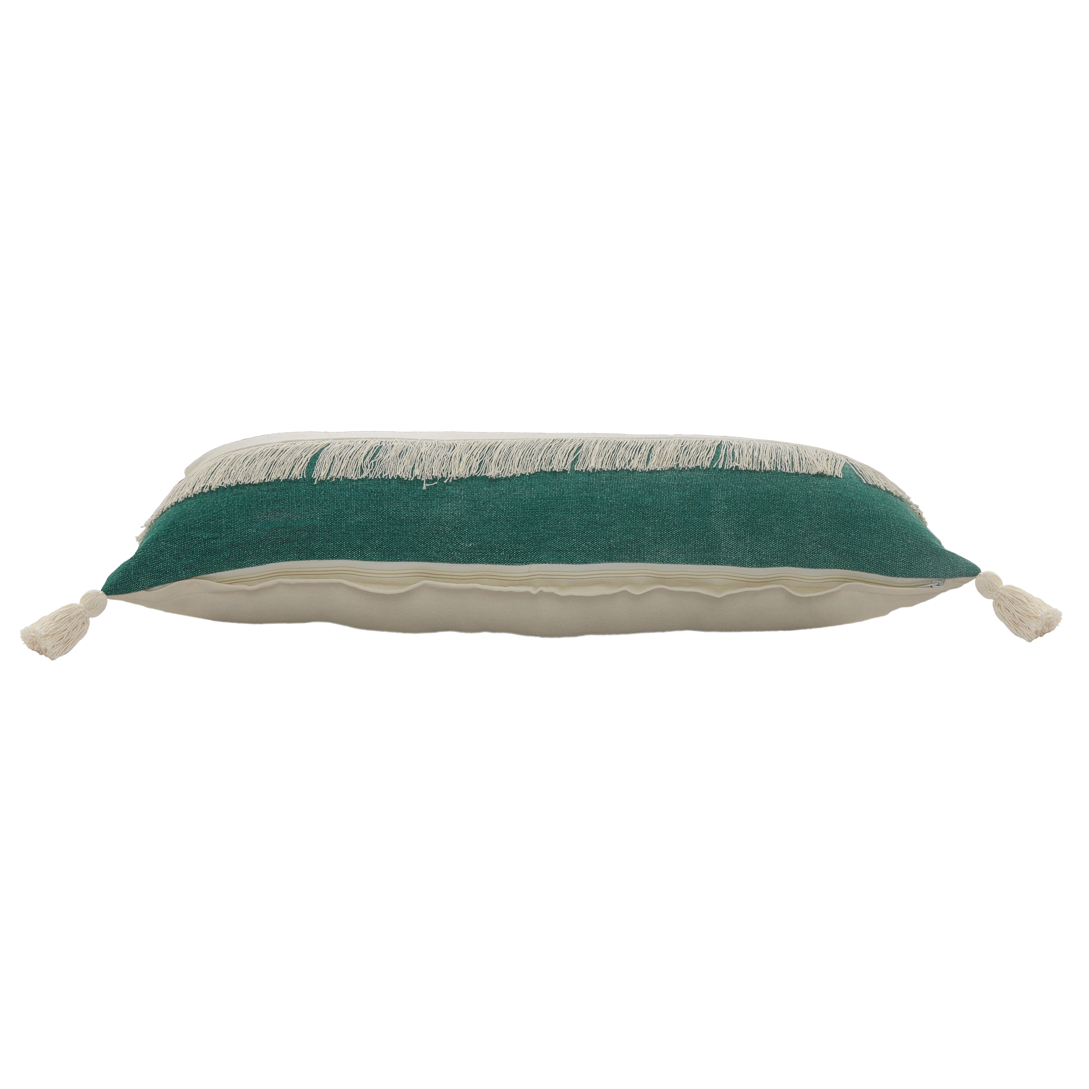 This 14-inch x 36-inch green and ivory lumbar beach striped cotton throw pillow cover will add a beautiful decorative accent to your decor. The green and ivory coloring of the extremely durable and long lasting cotton pillow cover will add dimension and texture to your space. Pillow covers are a good idea for anyone that loves to decorate or accent their space with color and texture. Combine with your own fill or insert to add decoration and dimension to your favorite chair, accent your sofa, or to use as part of your bed ensemble. 14.00-inch h x 36.00-inch w x 0.50-inch d.