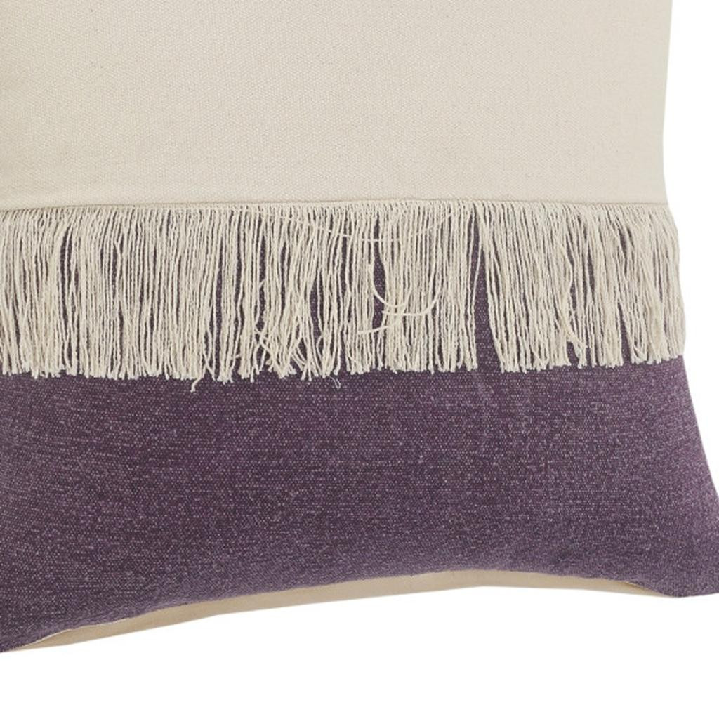 The 20-inch eggplant and off white beach cotton throw pillow cover with tassels is the perfect decorative accessory for your home. Durable eggplant and off white cotton has been used to give this pillow cover a beautiful look that will stand the test of time. Charming decorative tassels give this design texture along with a hand-crafted look and feel. Decorative pillow covers are a great way to change up the look and feel of your space easily and quickly. Combine with your own fill or insert to add decoration and dimension to your favorite chair, accent your sofa, or to use as part of your bed ensemble. 20.00-inch h x 20.00-inch w x 0.50-inch d.