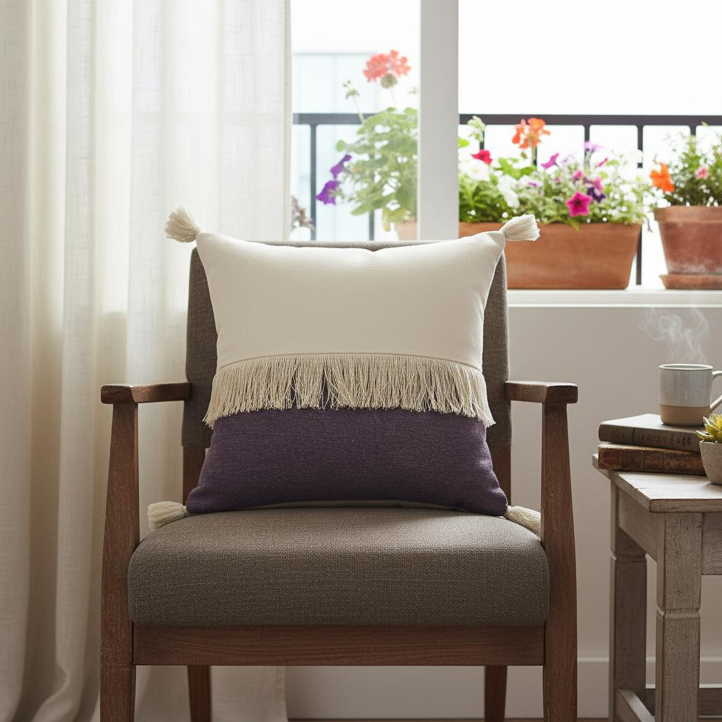 cotton throw pillow cover tassels, pillow cover tassels, throw pillow cover tassels, 20" eggplant white beach cotton, 20" eggplant white beach |