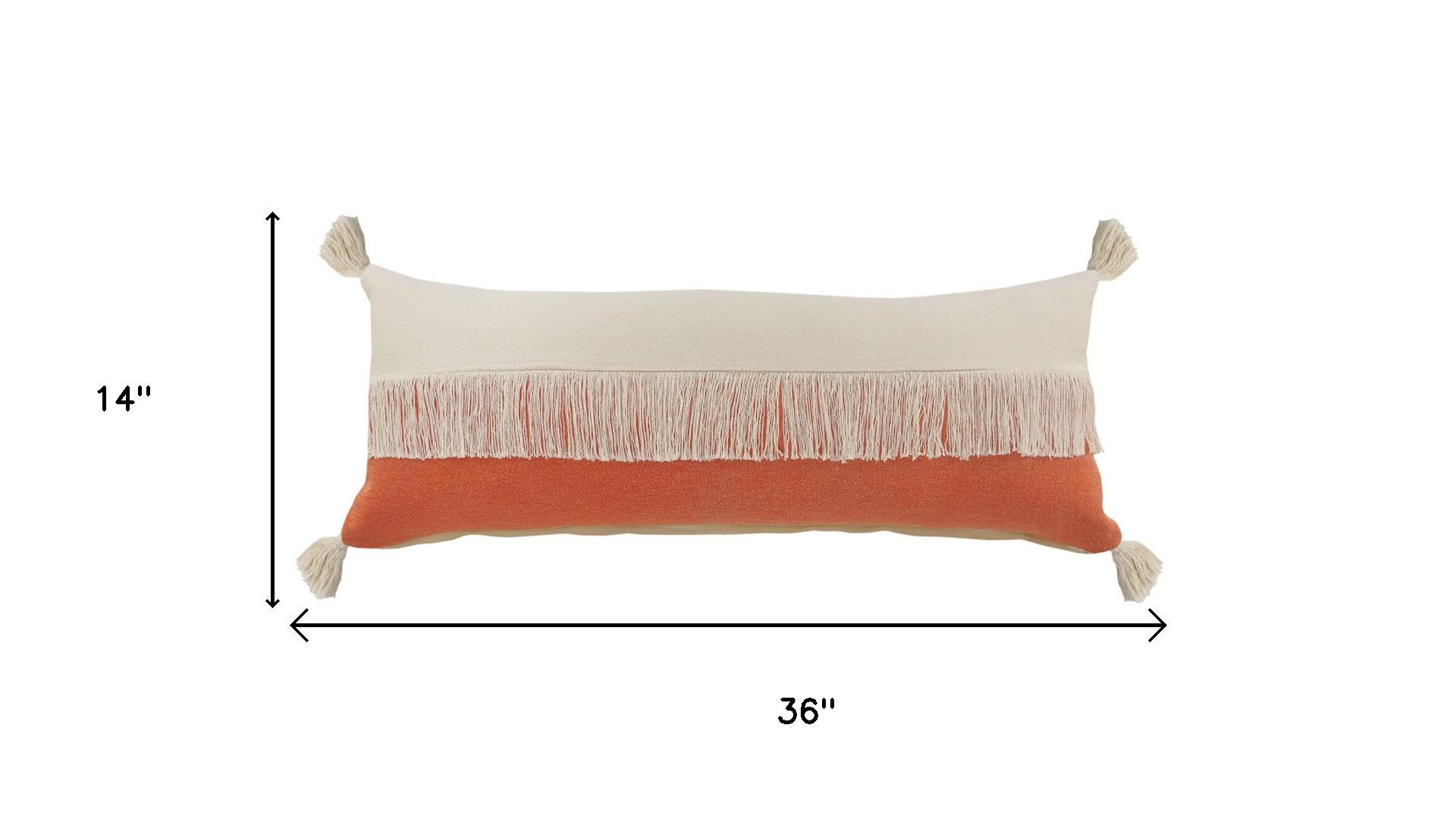 Bring a bit of fashion and zip to your space with this eye-catching and comfy 14-inch x 36-inch orange and ivory lumbar beach striped cotton throw pillow cover. This orange and ivory colored decorative pillow cover is made from high grade cotton that is durable and long lasting. Pillow covers are a good idea for anyone that loves to decorate or accent their space with color and texture. Combine with your own fill or insert to add decoration and dimension to your favorite chair, accent your sofa, or to use as part of your bed ensemble. 14.00-inch h x 36.00-inch w x 0.50-inch d.