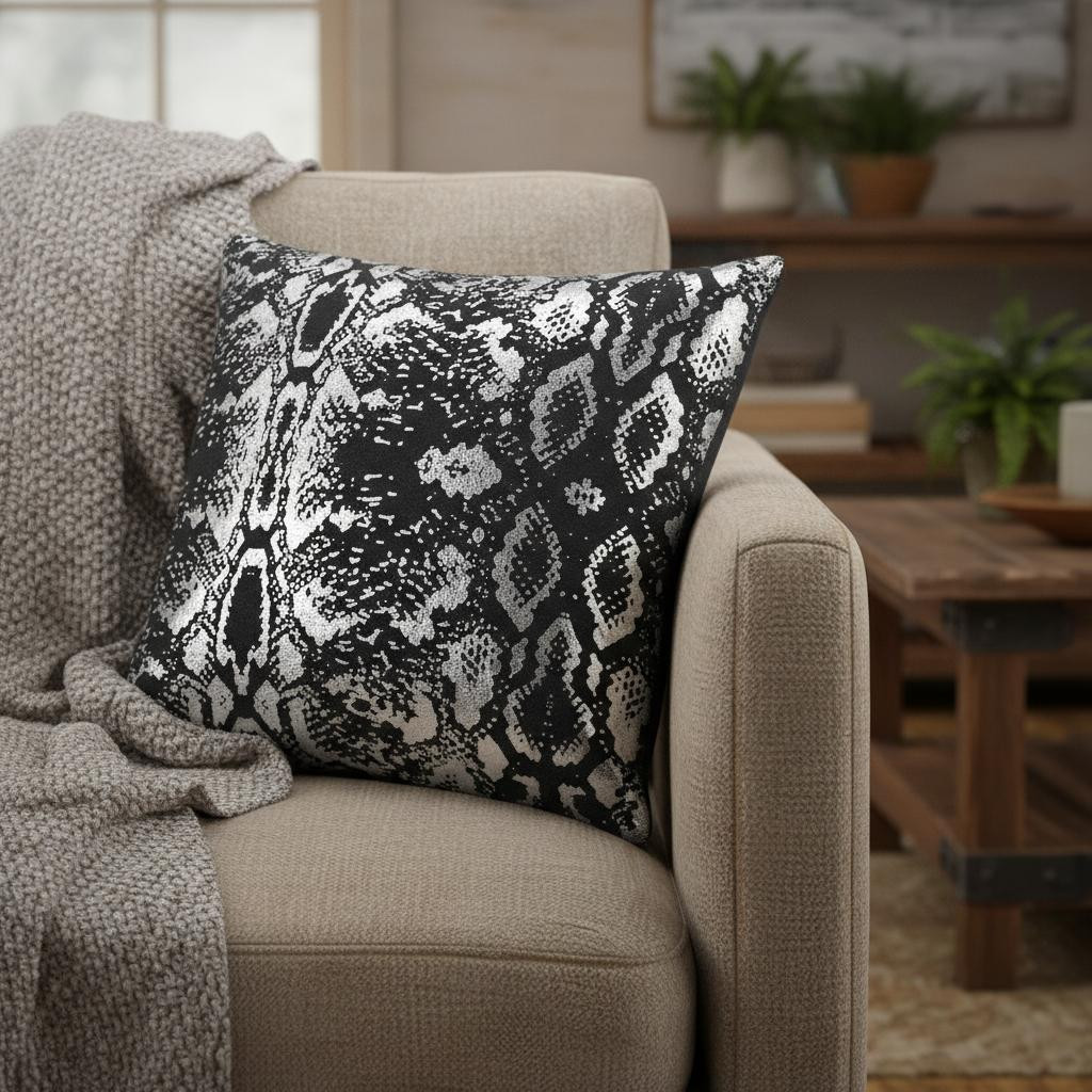 Unique and decorative, this comfortable 20-inch black and silver beach cotton throw pillow cover will leave a lasting impression. Durable black and silver cotton has been used to give this pillow cover a beautiful look that will stand the test of time. Pillow covers are a good idea for anyone that loves to decorate or accent their space with color and texture. Combine with your own fill or insert to add decoration and dimension to your favorite chair, accent your sofa, or to use as part of your bed ensemble. 20.00-inch h x 20.00-inch w x 0.50-inch d.