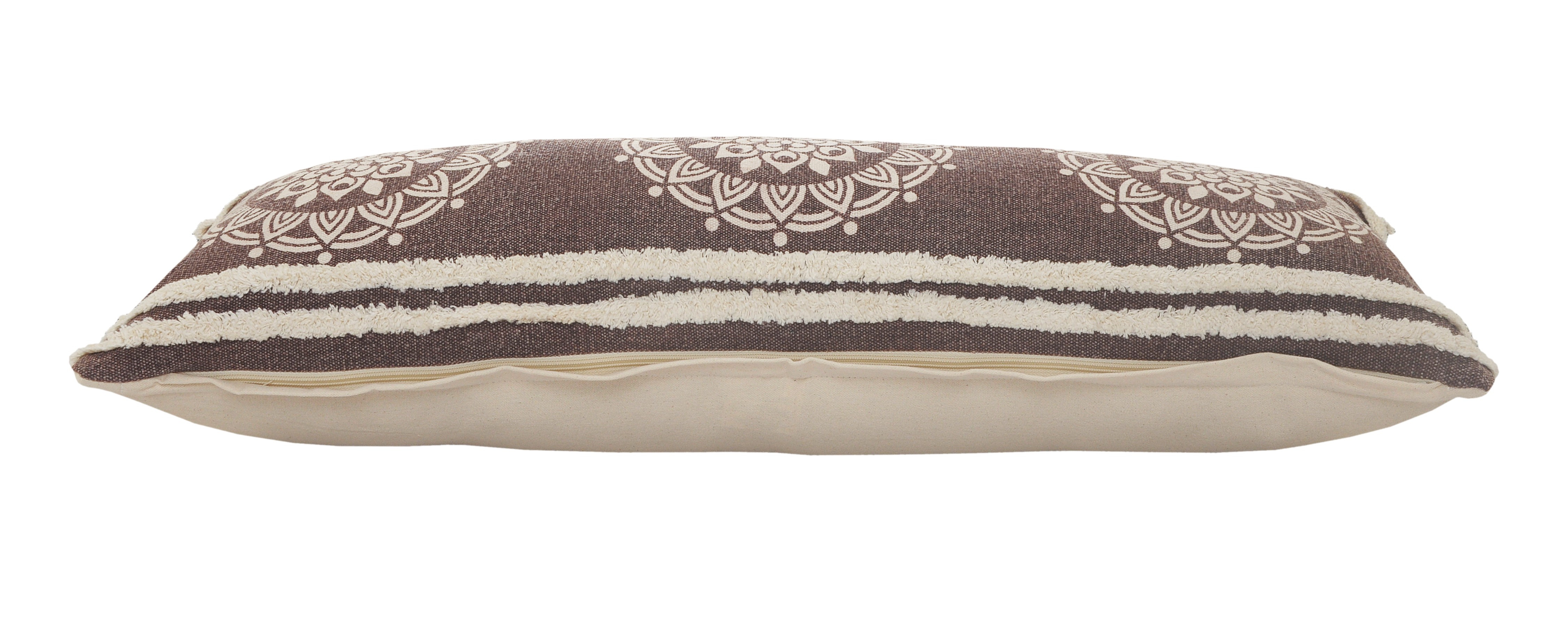 Bring a bit of fashion and zip to your space with this eye-catching and comfy 14-inch x 36-inch brown and white lumbar medallion cotton throw pillow cover. The brown and white coloring of the extremely durable and long lasting cotton pillow cover will add dimension and texture to your space. Pillow covers are a good idea for anyone that loves to decorate or accent their space with color and texture. Combine with your own fill or insert to add decoration and dimension to your favorite chair, accent your sofa, or to use as part of your bed ensemble. 14.00-inch h x 36.00-inch w x 0.50-inch d.