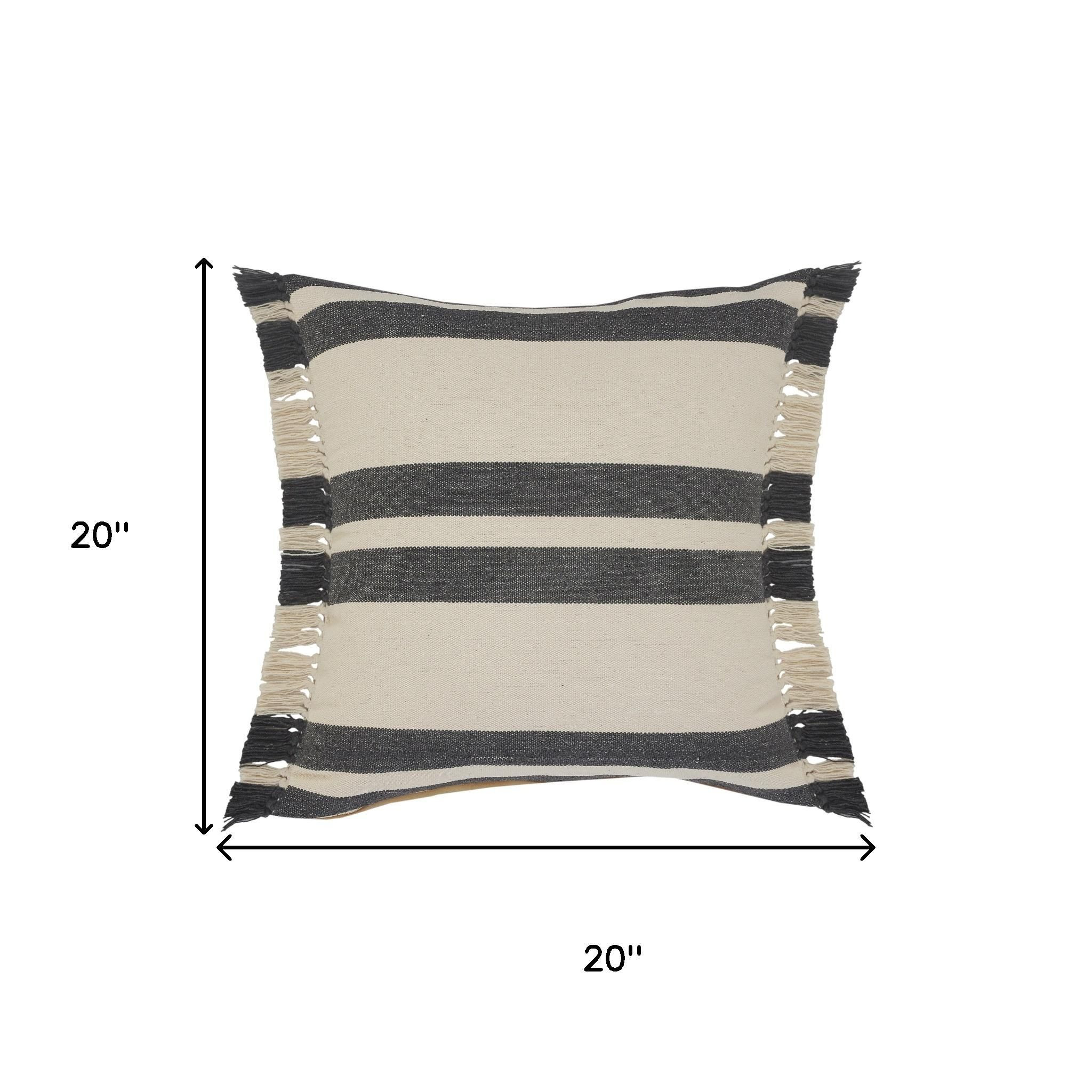 The perfect complement to your sofa, favorite chair, or bed, this 20-inch gray and white striped cotton throw pillow cover is a great decorative accent. Durable gray and white cotton has been used to give this pillow cover a beautiful look that will stand the test of time. Pillow covers are a good idea for anyone that loves to decorate or accent their space with color and texture. Combine with your own fill or insert to add decoration and dimension to your favorite chair, accent your sofa, or to use as part of your bed ensemble. 20.00-inch h x 20.00-inch w x 0.50-inch d.